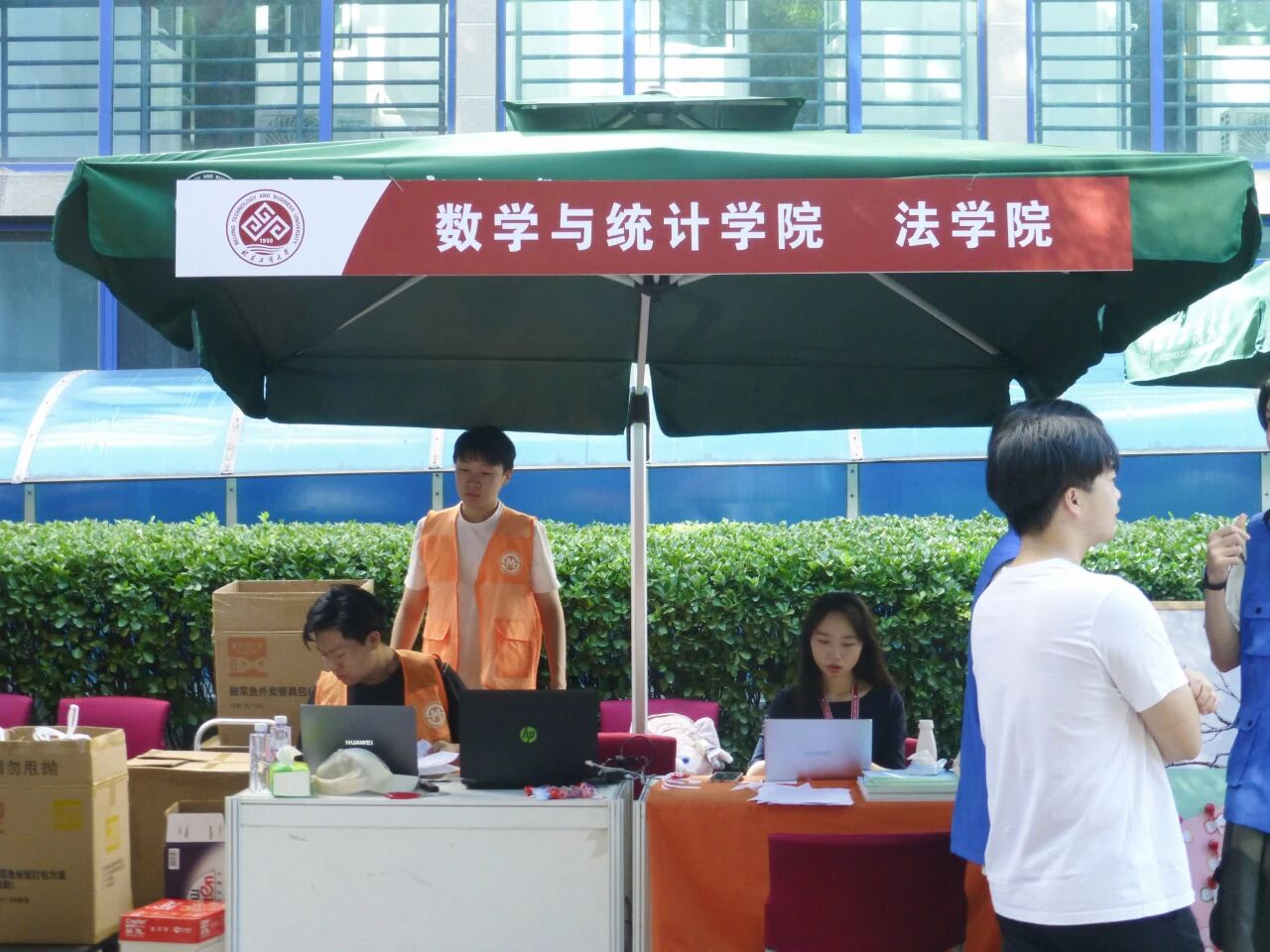 法学院特制暖心明信片,让家长书写寄语为新生送上惊喜;定制学院文创扇子,既实用又承载法学文化底蕴。志愿者们坚守各点位,热情引导、协力搬运,展现了法学院强大的组织力与浓厚的关怀氛围。