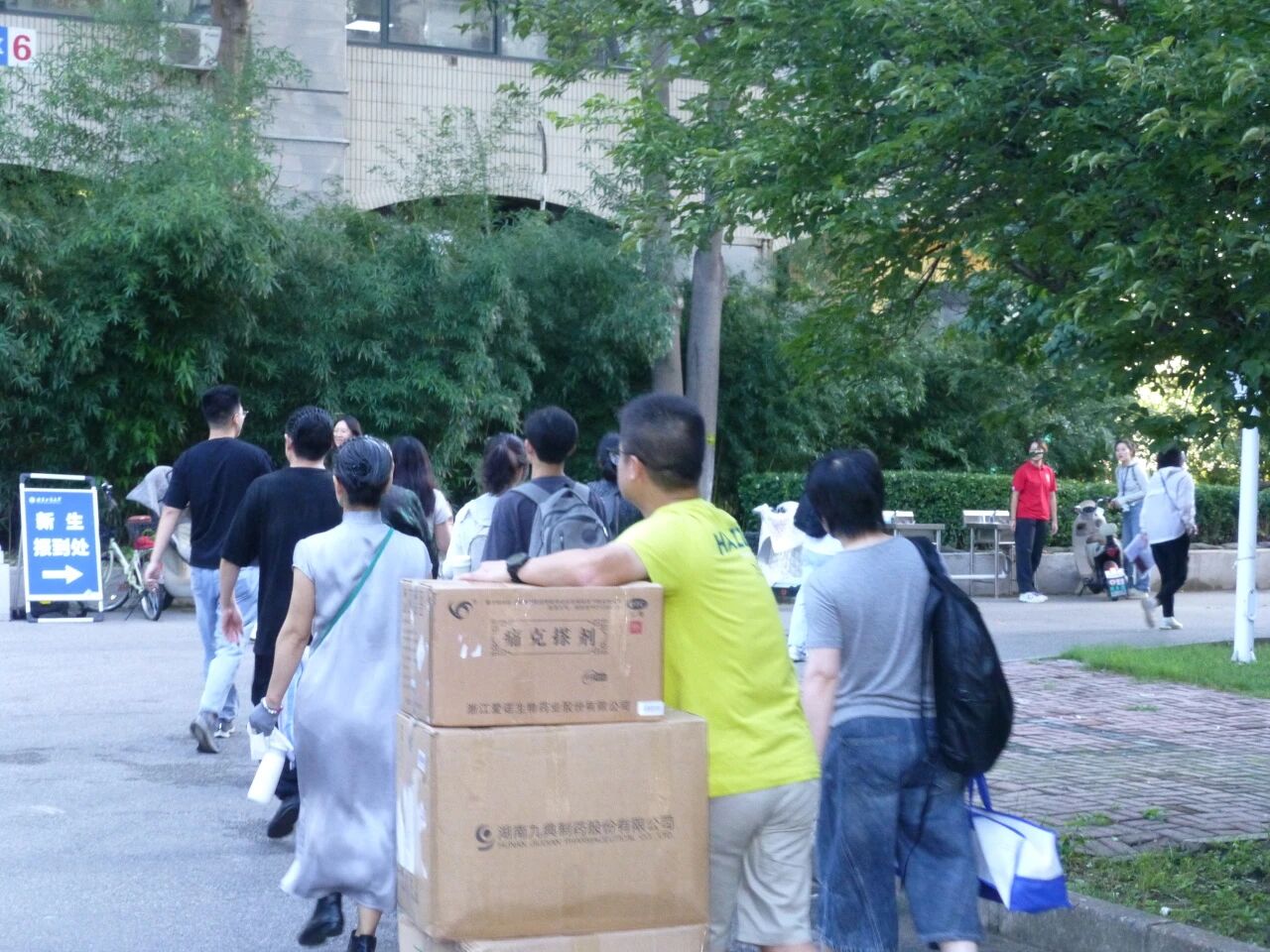 “同学你好,需要小推车吗?”针对行李较多的新生,“搬运行李志愿队”全程护航,扛着大包小包护送他们直达宿舍,真正实现“从校门到宿舍门”的无缝衔接。