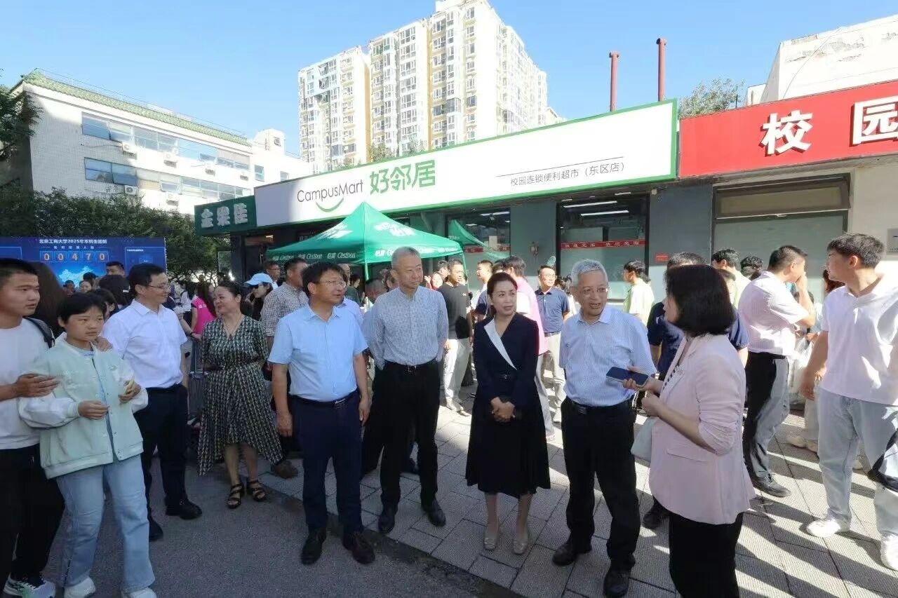 现场,党委书记沈千帆,党委副书记、校长郭建华,党委副书记李中奇,党委常委、副校长徐丹丹在相关职能部门负责人的陪同下前往校门口、迎新展台、宿舍等迎新点位,领导们详细了解了2025级新生报到情况,叮嘱车辆引导等各环节注意事项,确保迎新工作有序进行。校领导还与家长和同学们亲切交流,送上来自学校的关心与嘱托,现场氛围轻松愉快。“同学来自哪里?”“一路上顺利吗?”“对学校初印象怎么样?”……校领导们一句句关切的话语是温暖的鼓励,更是殷切的期望。
