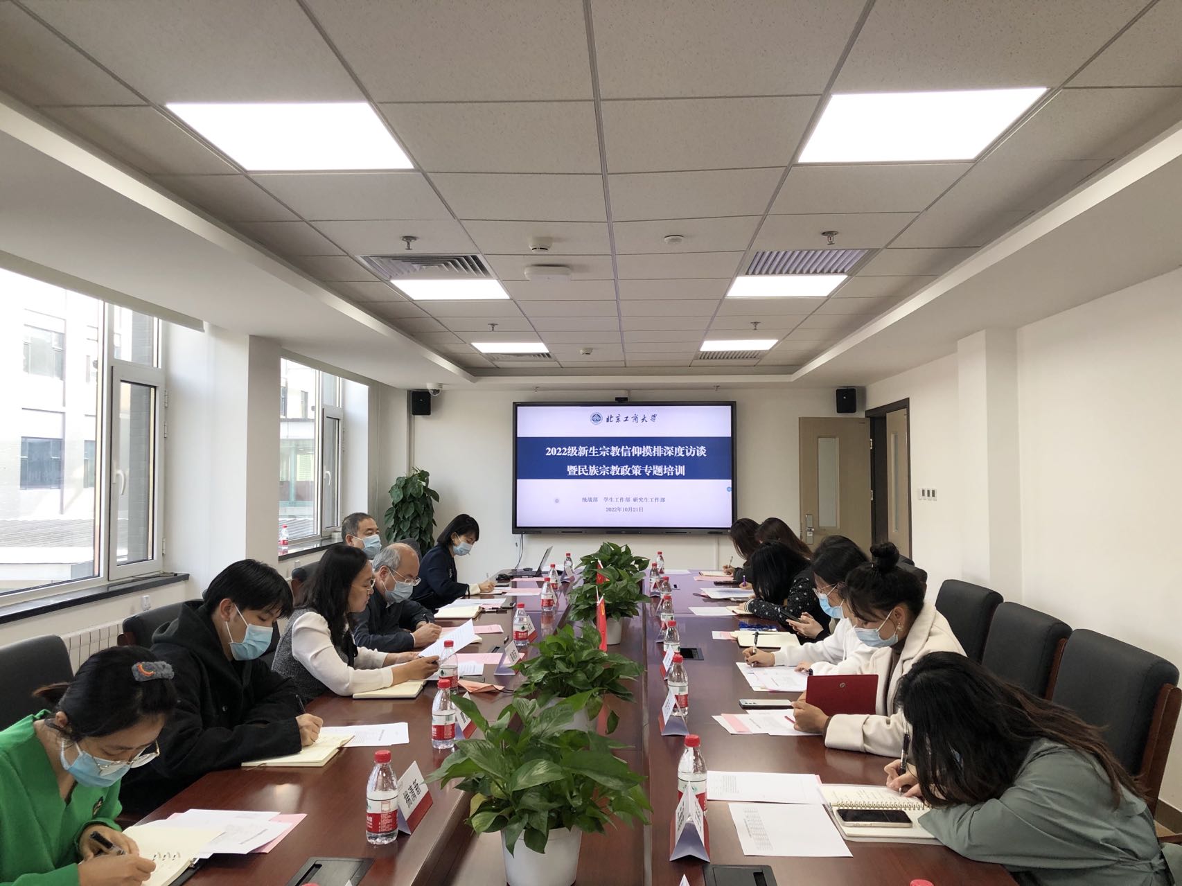 为进一步提升学工队伍专业素质能力,夯实学校民族宗教工作基础,10月21日,学校组织2022级新生宗教信仰摸排深度访谈暨民族宗教政策专题培训,党委统战部部长张国龙,学生工作部部长吕良出席会议。会议由学生工作部副部长盖晓庆主持,各学院民族宗教专项工作辅导员及少数民族学生辅导员参加会议。
