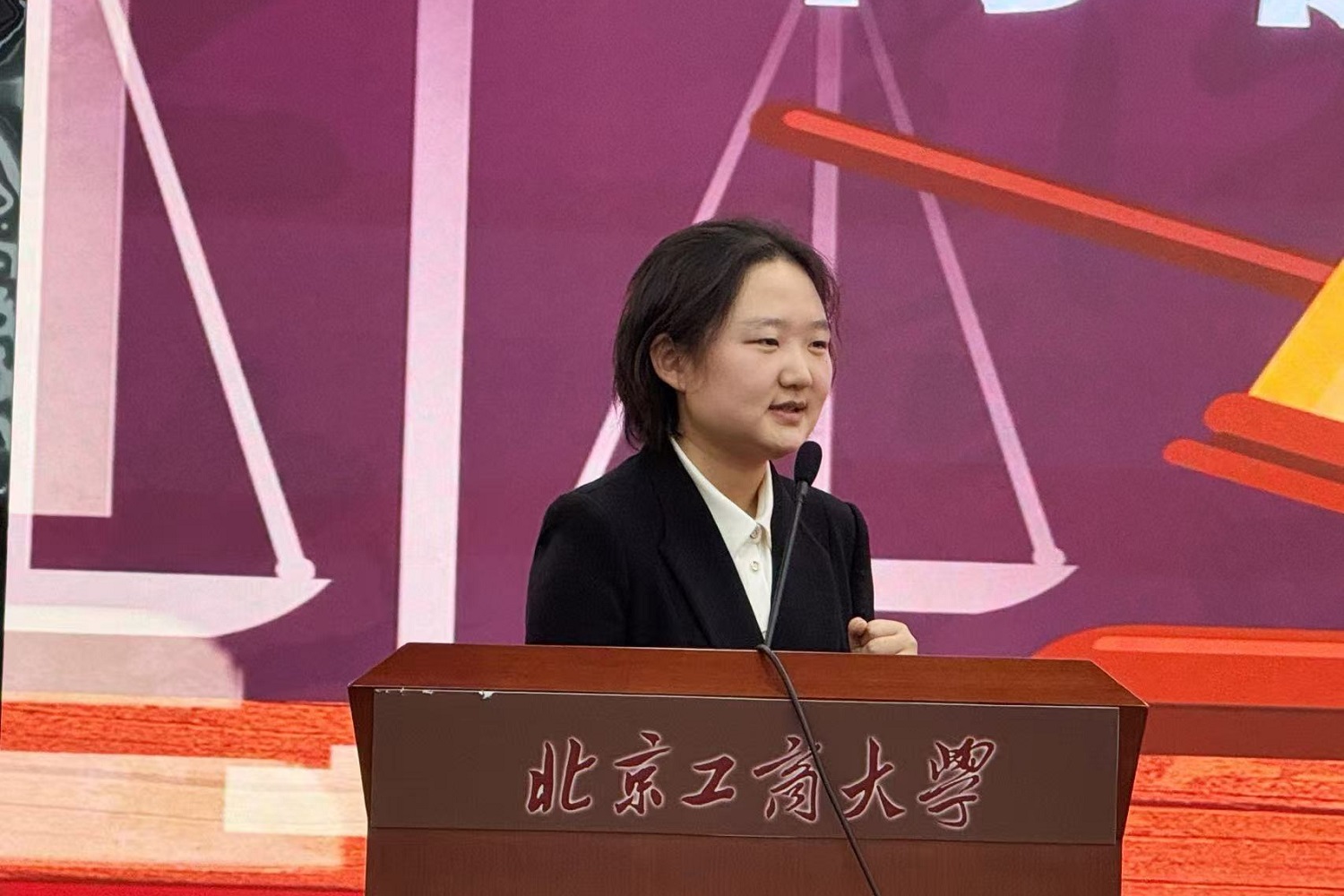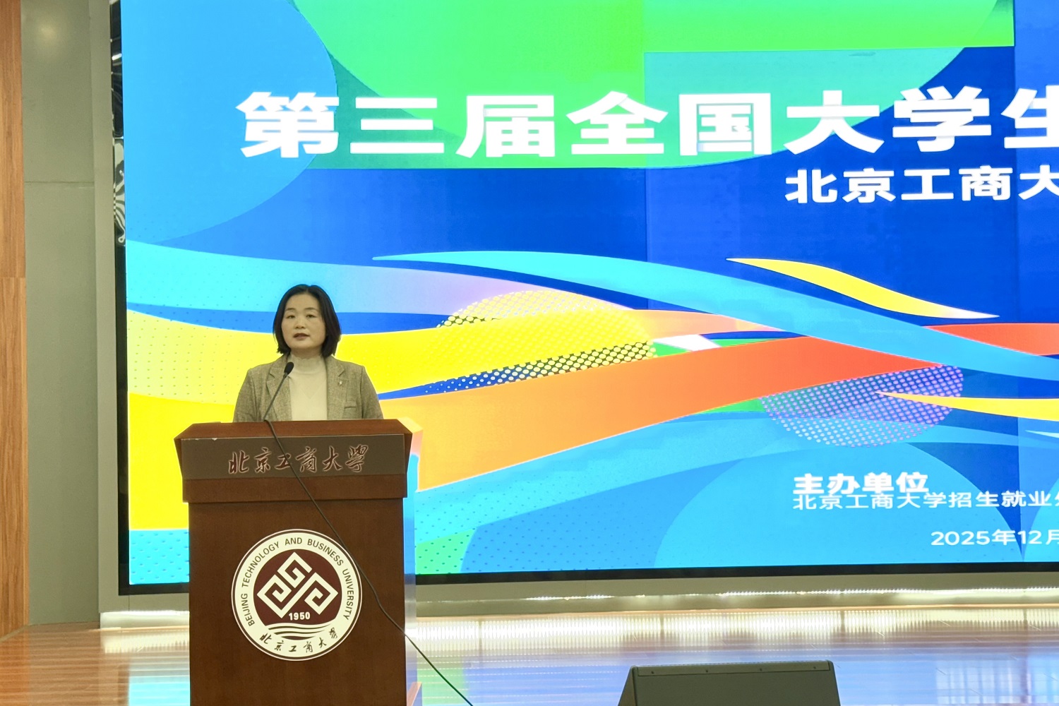 刘晶代表学校招生就业处对出席此次大赛的各位嘉宾表示感谢,对进入决赛的选手表示祝贺。希望同学们珍惜大学时光,不断提升专业深度、拓展能力广度,增强与时代发展的契合度,努力成长为可堪大任、能担重任的时代新人。她表示学校将持续为同学们提供全方位的生涯咨询和就业指导服务,全力助力同学们实现更高质量、更充分的就业。