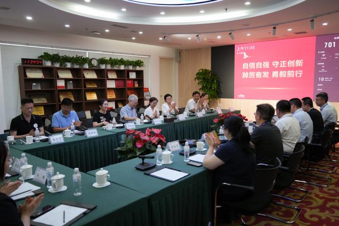 百度集团党委副书记杨忠鹏对李中奇一行表示热烈欢迎,接待并陪同参观了百度展厅。在座谈会交流环节,杨忠鹏详细介绍了百度集团的党建工作及企业文化,他从大局为重、责任为先、科技为国、服务为民四个方面分享了党建引领企业发展的成功经验。与会教师与百度集团的相关专家就智慧党建平台、思政课大模型应用、AI赋能教学科研、大学生实习就业等方面进行了深入的探讨与交流。