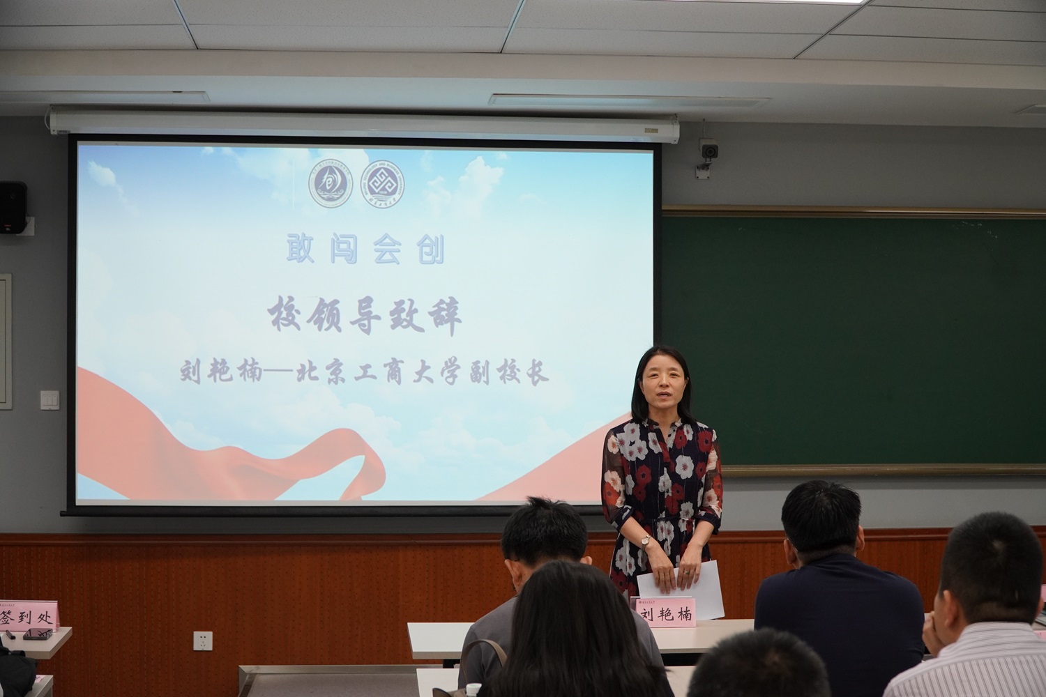 启动仪式上,刘艳楠代表学校对评审专家的到来表示热烈欢迎,对进入决赛的项目表示祝贺,对各学院周密组织、指导教师的辛勤付出表示感谢。刘艳楠指出,学校深入贯彻落实习近平总书记给中国国际大学生创新大赛参赛学生代表的重要回信和给大赛“青年红色筑梦之旅”大学生重要回信精神, “工商融合、课赛融合、创赛融合”一体推动创新创业教育融入人才培养体系,推动创新教育贯穿教育活动全过程。经学院初赛及校赛网评,有85支队伍进入决赛现场,项目数量是2024年的2.5倍,实现学生培养层次本硕博全覆盖,营造了浓厚“敢闯会创”的校园“创”文化。刘艳楠对参赛学生提出三点希望:一是遵守规则,展现良好的竞赛精神和学术诚信。二是求真务实,用在课堂和实验室学到的知识解决实际问题,在创新实践中增本领、长才干。三是追求卓越,弘扬科学精神,积极投身科技创新,为推动科技进步贡献青春力量。