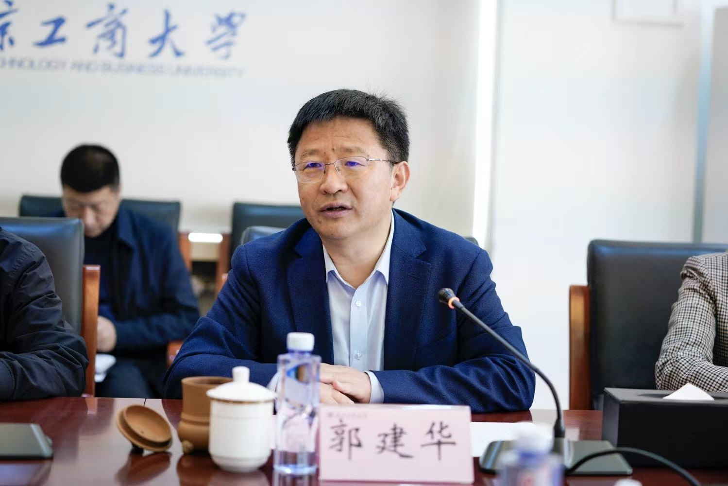 郭建华介绍了学校发展历史和办学基本情况。他谈到,近年来,学校抢抓市属高校分类发展机遇,坚持“工商一体化”发展理念,锚定创建“双一流”学科、全面推进高水平研究型大学建设的目标,充分发挥食品、商科、轻工等学科优势,奋力提升对中国式现代化和新时代首都发展的支撑力贡献力,各项事业发展取得良好成效。他表示,作为北工商优秀校友,陈承茂会长不仅在事业上取得了卓越成就,更以实际行动践行着家国情怀,为推动两岸交流合作作出了重要贡献。希望通过此次交流座谈,进一步深化学校与促进会的沟通合作,强化母校与校友的血脉深情,共同谱写高质量发展新篇章。