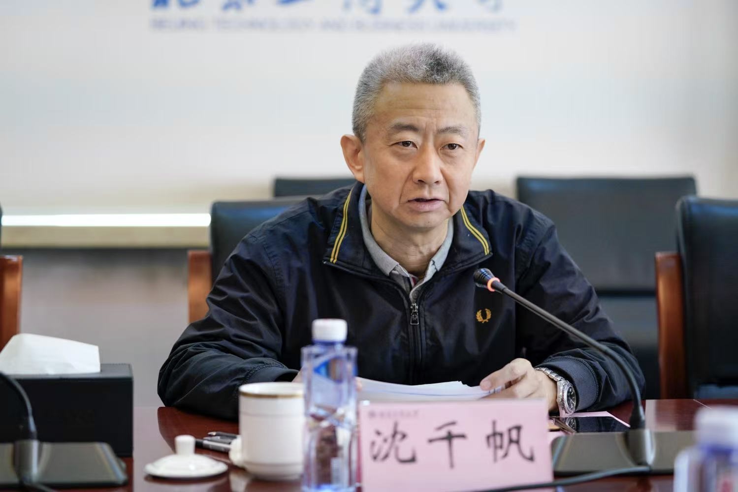 3月6日,78级商经校友、福州海峡两岸和平统一促进会会长陈承茂一行回到母校。学校党委书记沈千帆,党委副书记、校长郭建华,党委常委、副校长毛新述在阜成路校区会见了陈承茂一行并进行座谈交流。座谈会由毛新述主持。