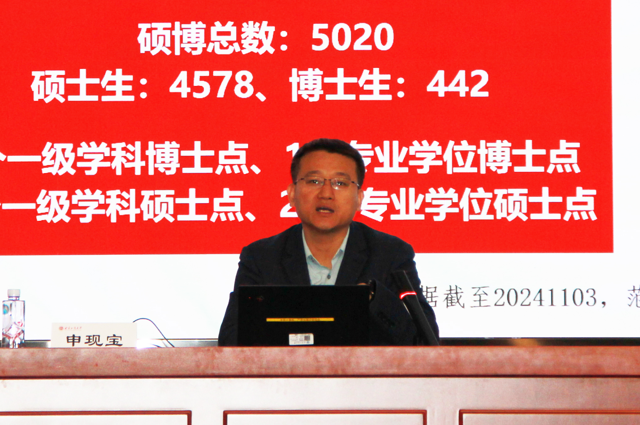 郭建华作“教育家精神”专题辅导报告。他从历史与现状、责任与使命、寄语与期望三个方面深刻回顾了学校的悠久历史和发展轨迹,全面展示了学校的核心优势和显著成果。同时,他向新入职教职工表达了深厚的期望。他强调,要坚定围绕加快创建“双一流”学科、全面推进高水平研究型大学建设的奋斗目标,按照“坚持一条主线、落实两校区发展规划、加快推进三大转型、稳步推动四个学部改革”的发展思路,把握机遇、凝心聚力,共同为学校的高质量、内涵式发展贡献力量。他指出,要明确教师的责任和使命,深刻理解北工商的历史传统,立志成为“躬耕教坛、强国有我”的典范,践行“爱国、爱教、爱生”以及“身教、能教、善教”的教育理念。最后,他鼓励青年教师珍惜青春年华,充分享受学习的乐趣,挥洒创造激情,切实担负起对国家、对社会的使命和责任,大力弘扬教育家精神,争做学生为学、为事、为人的大先生。
