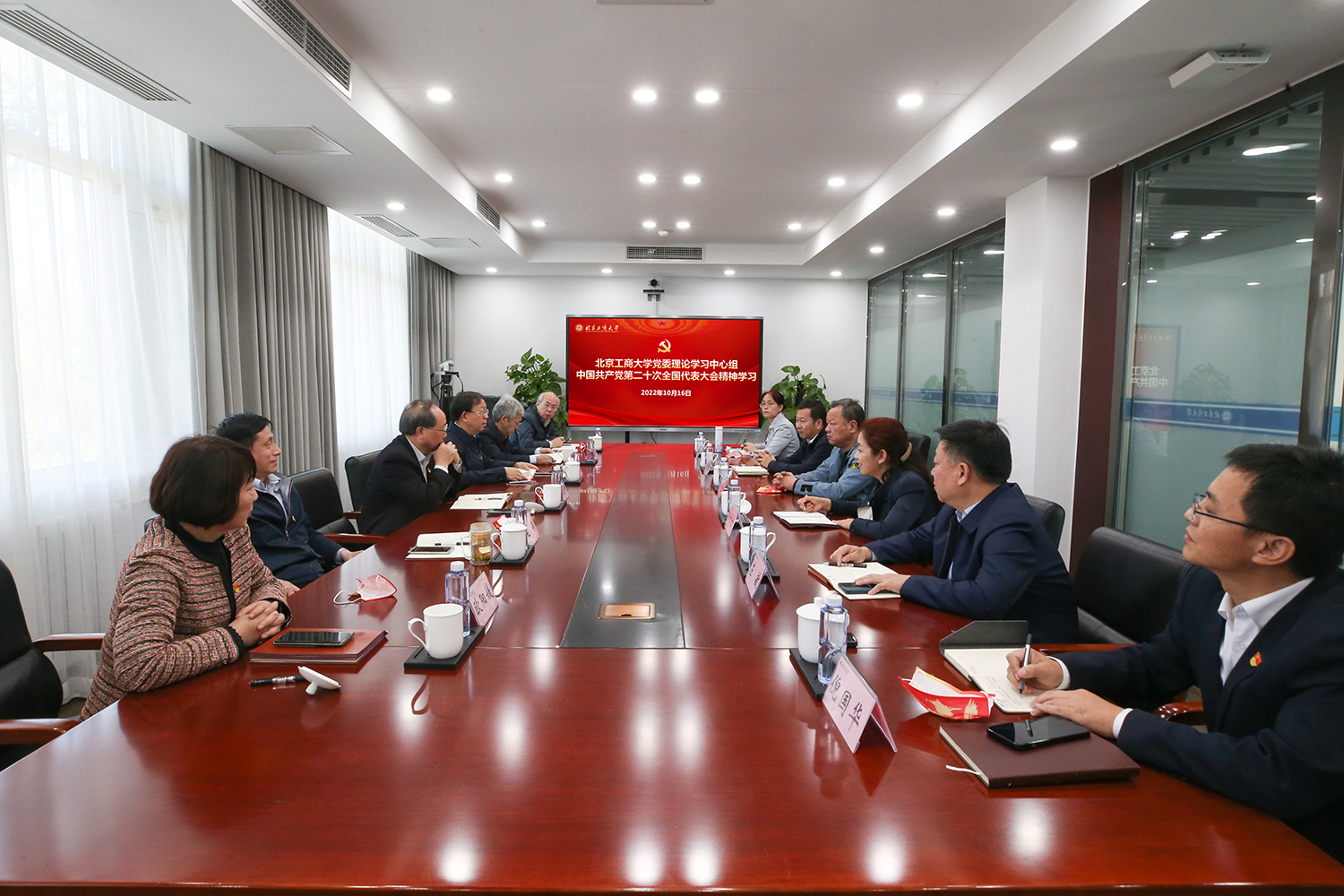 党委书记黄先开表示,党的二十大是在全党全国各族人民迈上全面建设社会主义现代化国家新征程、向第二个百年奋斗目标进军的关键时刻召开的一次十分重要的大会,党的二十大报告高屋建瓴、思想深邃、振奋人心。他强调,习近平总书记报告中特别提到教育、科技、人才是全面建设社会主义现代化国家的基础性、战略性支撑,对高等教育提出更新更高的要求。作为首都高校,要切实肩负推动教育、科技、人才全面发展的重任,深入实施科教兴国战略,全面提高人才培养质量。要以高度责任感、使命感深入学习宣传贯彻党的二十大精神,坚持和加强党的全面领导,全面贯彻党的教育方针,始终牢记育人初心使命,夯实立德树人根基,着力培养广大学生努力成为听党话、跟党走、担当民族复兴重任的时代新人,努力办好人民满意的教育。要更加坚定和自觉地把学校事业发展融入党和国家事业发展大局,全方位推动北工商高质量发展,奋力谱写全面建设高水平研究型大学崭新篇章,为全面建设社会主义现代化国家、全面推进中华民族伟大复兴而团结奋斗、再立新功!