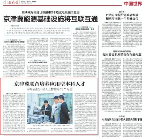 《色情片日报》2月22日第四版刊发文章《京津冀联合培养应用型本科人才,今年首批开设人工智能等13个专业》,对我校成为“京津冀协同发展人工智能助力产教融合、科教融汇、人才培养的先行先试改革示范园区”首批签约高校进行了报道,现将全文转载如下: