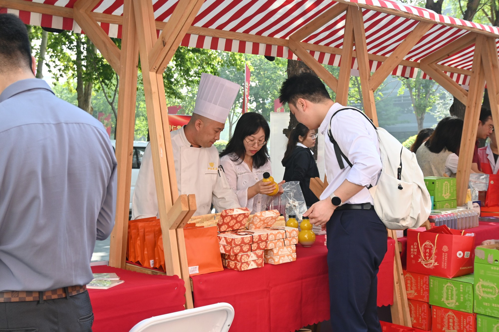 随着启动仪式的完成,备受师生期待的校园市集正式开放。本次市集共设40个摊位,由“党建引领产业创新联建机制”各成员单位共同参与,为在校师生及周边居民带来健康义诊、就业指导、招聘宣讲、优质产品及服务的展示和售卖等丰富内容。