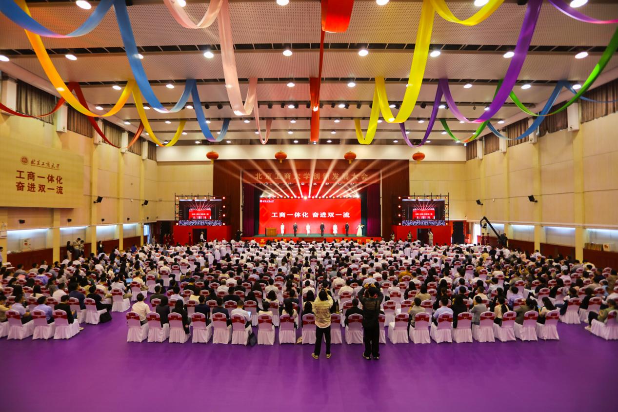 校党委副书记、校长郭建华作学校创新发展成果及创建“双一流”情况报告。他代表学校全体师生员工,向关心支持学校发展的各级领导、各界朋友、广大校友,致以热烈欢迎和衷心感谢。他回顾了学校从建校到三校合一、再到 “工商一体” 新征程的发展历程,汇报了学校在学科建设、人才培养、科学研究、师资队伍建设等方面取得的丰硕成果。他强调,建设世界一流大学和一流学科既是国家教育强国战略的迫切要求,更是学校自身发展的内在需要。他号召全校师生以此次大会为新起点:以“工商一体”之智,争当教育强国建设的先锋队;以“奋进一流”之志,争当科技自立自强的突击队;以“经世济民”之责,争当区域协调发展的主力军,在中国式现代化和新时代首都发展的壮阔征程上展现北工商担当。