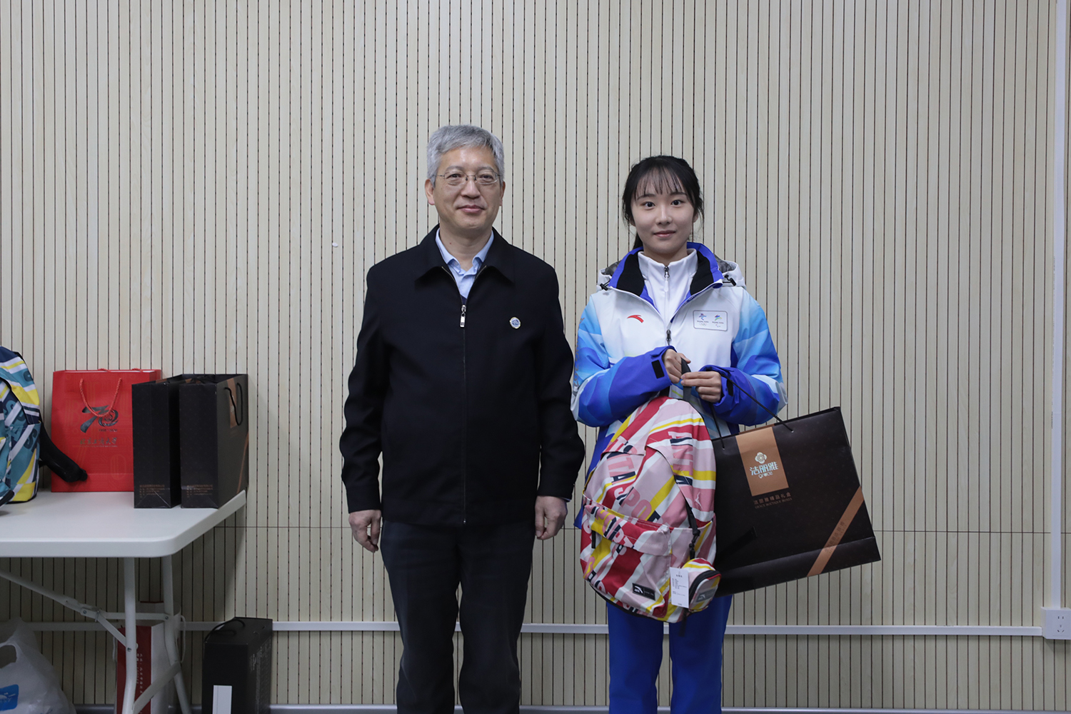 党委副书记李中奇向志愿者赠送了暖心物资,详细了解了志愿者们的衣、食、住、行等方面保障情况,李中奇副书记勉励志愿者要体味校徽中“三品”中的深刻涵义,以优质的服务水平和昂扬的面貌践行志愿精神;在工作过程中不断提升综合素质,听从指挥,甘于奉献,掌握工作规律,团结协作,用最完美的服务、最精彩的表现代表中国温暖世界;同时希望我校志愿者可以经受重重考验,圆满完成志愿服务任务,并及时向学校反馈工作情况,反映保障需求,学校永远是冬奥志愿者坚强的后盾!
