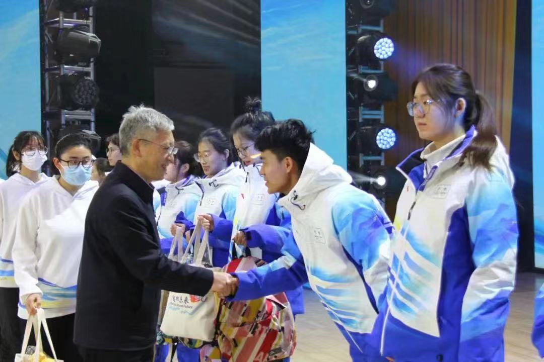 学校高度重视对冬奥志愿者的服务保障工作,建立健全“大后方”机制,为志愿者在冬奥期间的学习生活做了充分的准备和周密的安排,解决学生后顾之忧。会上,校党委副书记李中奇为志愿者代表发放学校为全体冬奥会志愿者精心准备的物资激励包,给予我校冬奥会志愿者深深鼓舞与温暖关怀。