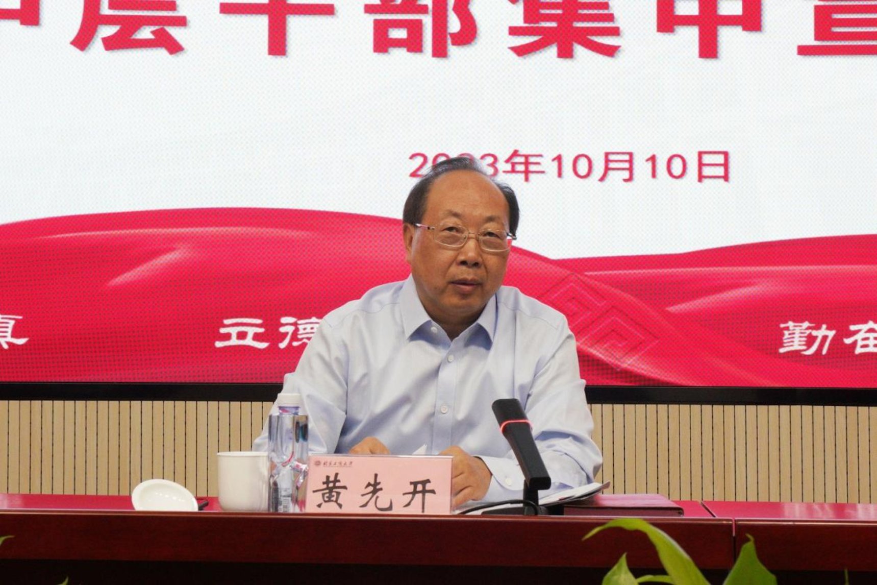 黄先开对全体新任职干部作集体谈话中。他代表学校党委行政对因年龄原因不再担任中层干部职务的同志多年来为学校发展作出的突出贡献表示感谢。对全体新任职干部提出三方面要求:一是讲政治顾大局,坚决服从组织安排。要不断提高政治判断力、政治领悟力、政治执行力,在改革发展转型的重要时期,在建设高水平研究型大学的关键阶段,坚决贯彻落实学校党委的各项决策部署,做到守土有责,守土尽责,站在学校事业发展全局的角度,主动谋划思考解决问题,确保工作平稳有序的运行。二是讲团结重协同,有序做好工作交接。要增强大局意识,保持团结协作,以高度责任感做好工作交接和传帮带,在新任领导未到任之前,原岗位领导切实担负起责任,确保工作规范有序、高效运转。要结合岗位职责扑下身子系统深入开展调研,加强学习、善于思考,在深入学习调研的基础上谋划好各项工作,以时时放心不下的责任感和紧迫感,推动学校又好又快发展。三是讲纪律守规矩,营造良好政治生态。要倍加珍惜干事创业的平台,以平常心看待自身的“进退留转”,以更高的标准严格要求自己,以卓有成效的工作业绩,积极向上的风气,回报全校师生的期待、组织的信任与重托,齐心协力谱写全面建设高水平研究型大学新篇章。