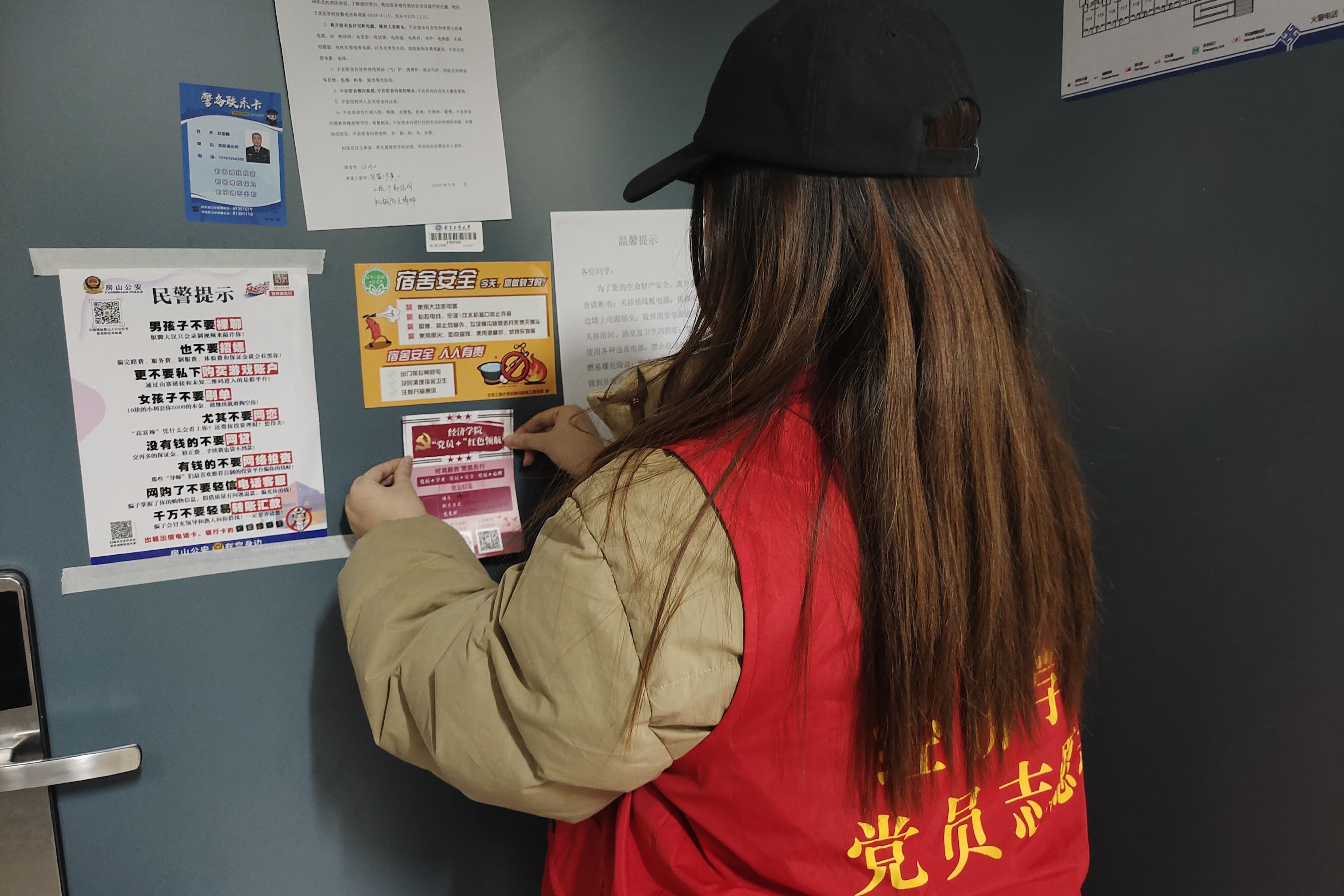 学院设立宿舍红色责任区,细化责任,做好传帮带,推进特色工作。结合学院年级、学生职能部门工作实务划分及学生公寓住宿地理位置分布情况,按就近、分类、便捷、高效的原则,设立党员安全责任人。学生党员亮身份、践承诺,发放“‘党员+’红色领航”标牌,搭建宿舍高效云平台。红色责任区旨在发挥党员先锋模范作用,起到带头和桥梁“双”作用,压实党员责任,推动党员立足安全岗位作贡献,构建平安校园,切实做到“躬身先行”的弘扬者。