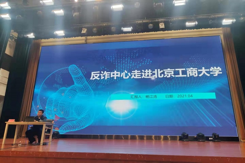 为强化落实“四反两治”专项治理行动,进一步加强安全教育,增强反诈安全意识,4月21日晚,商学院在良乡主校区举行“民警进校园”专题安全讲座。本场讲座邀请到了房山区刑侦支队情报中队中队长、分管反诈中心工作的杨江浩警官为师生进行讲授,商学院学生工作办公室老师、全体学生安全专员400余人与会聆听。讲座由商学院党委副书记张倩主持。
