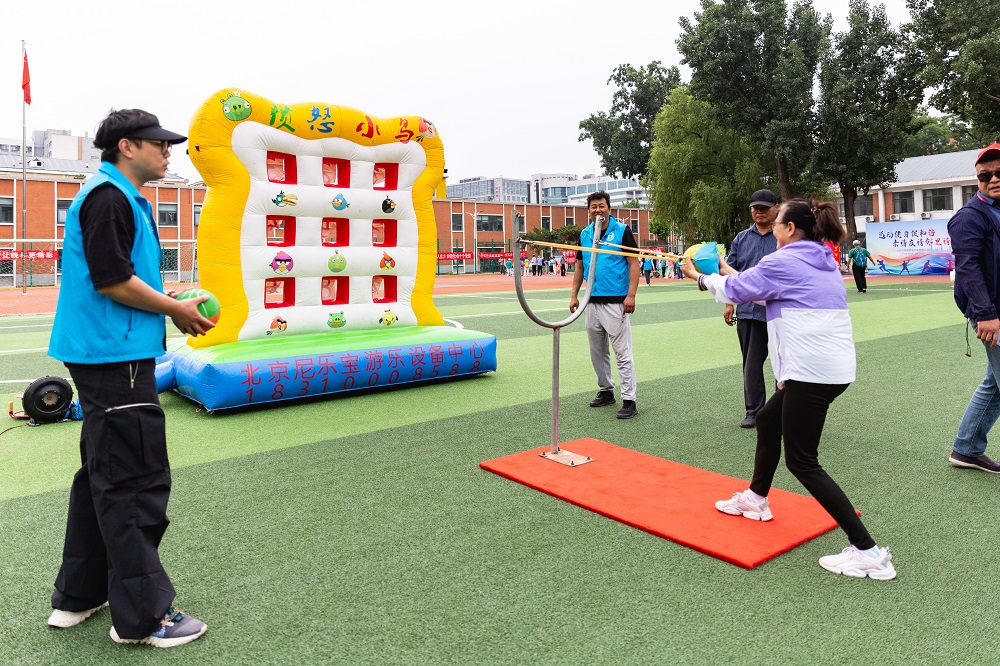 本次活动的主体项目是精心设计的趣味运动,让每位参与者都能在轻松愉快的氛围中享受运动的乐趣。“筷子夹球”项目需要在最短的时间内用筷子夹出乒乓球再放入指定位置,锻炼老年人的手指灵活度。“足球飞镖”“沙包掷准”“冰壶”“动感单车”锻炼老年人的四肢精准度和力量。“投箭入壶”“吸盘射箭”、端午节民间传统游戏“射五毒”“捶丸”既体现了传统文化,又结合了现代技术,为健康运动增添了科技感。“木球攻门”“套圈寻宝”既考验了策略思考,又增加了运动的趣味性。模仿游戏角色用弹弓将小鸟射向小猪的项目“愤怒的小鸟”充满童趣,吸人眼球,既考验参与者的力度控制,又激发了竞技激情。“抓娃娃”让老同志回到了童年时光,感受到满满的童趣。丰富的趣味运动项目寓意“点亮色情片”,老同志们在参与中提高了健康理念,增添了生活乐趣,增强了为首都增光添彩的良好心愿。