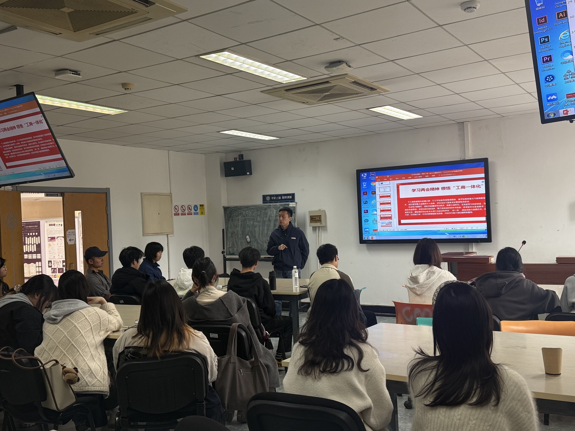 为深入学习贯彻2025年全国两会精神,全面了解我校“工商一体化”发展理念,学生处组织各学院全覆盖开展“学习两会精神,领悟‘工商一体化’”主题班会。