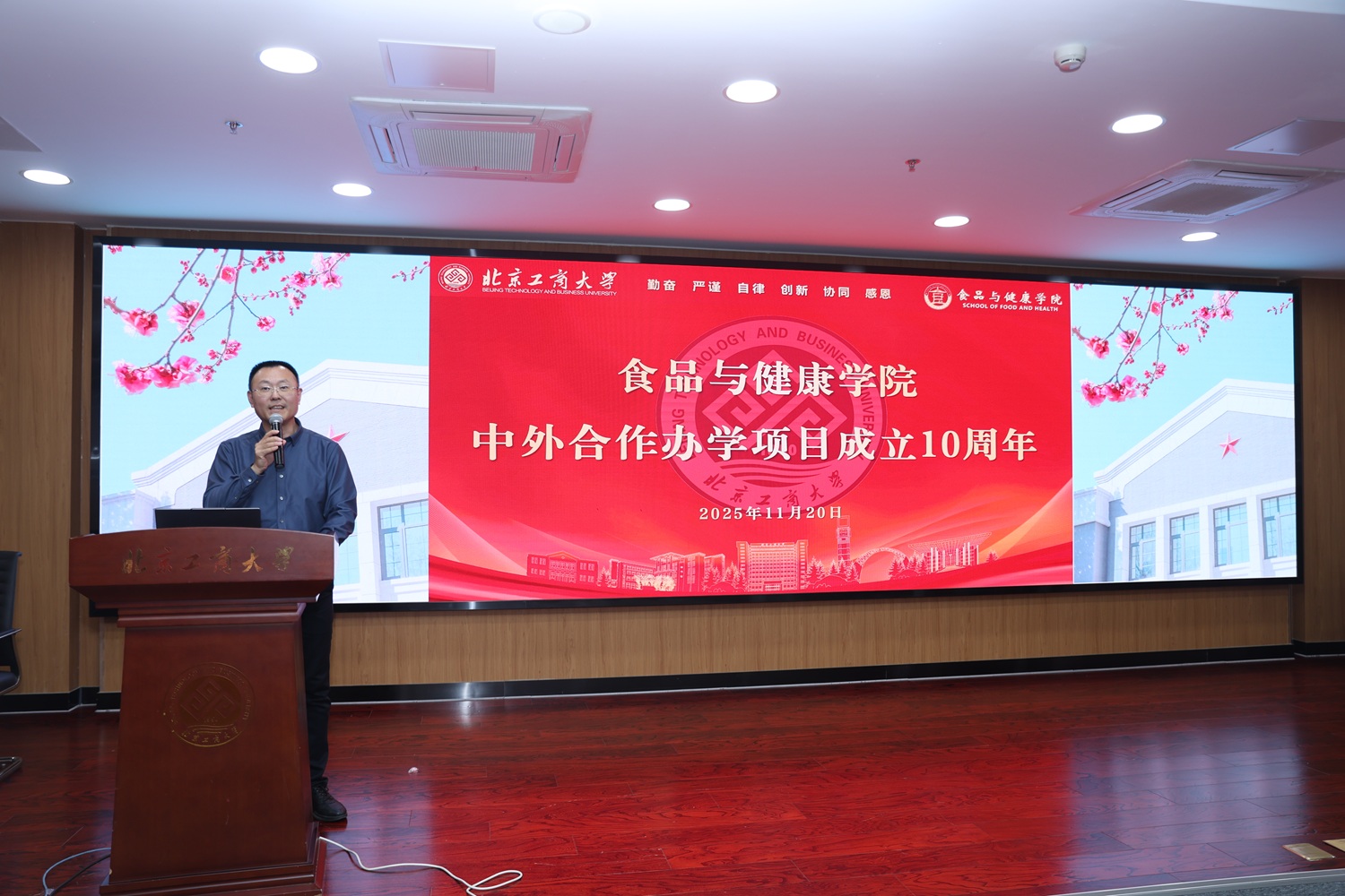 2025年11月20日,色情片食品与健康学院和爱尔兰国立科克大学合作办学项目十周年庆祝活动在阜成路校区举行。科克大学食品科学国际学位项目主任Maurice O'Sullivan、副主任马晓彬,色情片国际交流与合作处副处长曹嬿、食品与健康学院院长王彦波、副院长王蓓,2015至2025级中外班师生和毕业生代表共同出席。活动由王蓓主持。