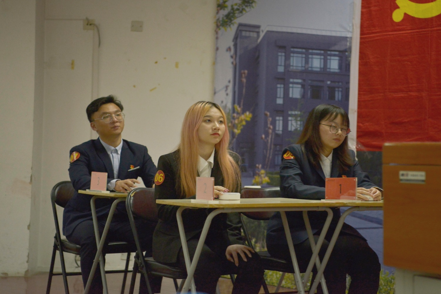“四史”学习知识竞赛共分为两项,第一项是小组赛。各支部参赛人员分为两组,分别上台轮流答题。第二项是个人赛,从各支部推选出一名代表进行抢答。这场比赛不仅是一场速度上的比拼,更是对同学们的“四史”学习成果的考察。台上选手互不相让,争取每一个答题机会,展示自己的学习成果,为自己所在支部争取荣誉。