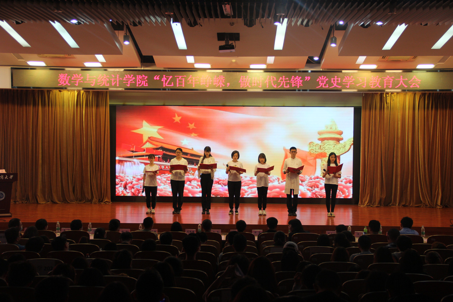 5月9日,数学与统计学院在良乡主校区举行“忆百年峥嵘,做时代先锋”党史学习教育大会。学校党史学习教育第一巡回指导组副组长、学校办公室主任祝钧,学生处处长吕良,组织部副部长郑光参加大会。数学与统计学院领导班子、学院师生300余人参加了本次党史学习教育大会。