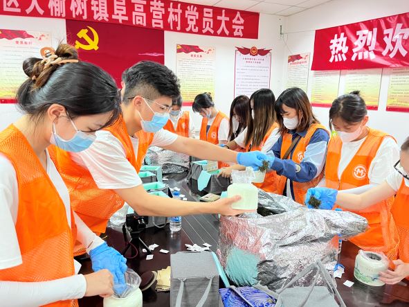 阜高营村依托“状元村”这张文化名片和种植黄芩茶的实际,打造“状元”黄芩茶;实践中,师生们了解到阜高营村国色牡丹园,是京北牡丹品种最多的牡丹种植基地,在此基础上,以牡丹花为原材料制作生产了鲜花饼,谈恋爱游客欢迎。实践团成员还亲身体验了牡丹嫁接流程、状元黄芪茶的装罐,也品尝了阜高营村的鲜花饼。当今时代是飞速发展的,无论是状元茶还是鲜花饼,打开销路都需要宣传,需要让大众熟悉、了解产品。实践团成员通过所看所思所行,提出村庄可自形成状元茶、鲜花饼的生产线,自产自销,通过自媒平台等让其面向大众、走向大众。这些好的建议,给村干部和企业开拓了思路,该村干部表示,将把同学们的建议落实到今后的发展中,努力形成品牌,走出一条具有阜高营特色的农特产品生产销售的路子,拉动村里经济发展。