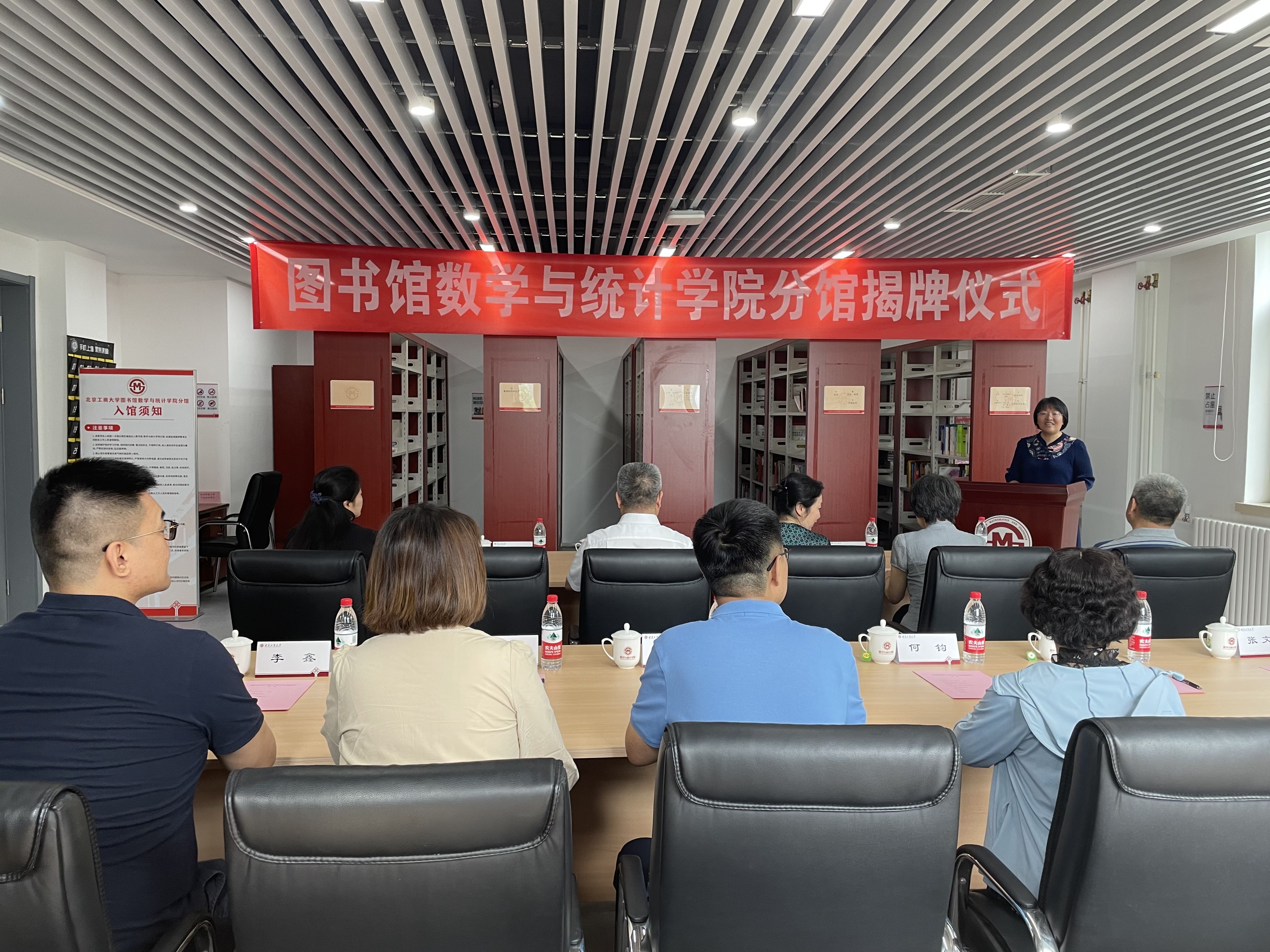 曹显兵在致辞中首先对图书馆老师们的到来表示热烈欢迎。他表示,图书馆数统分馆的成立标志着学院在学科建设和服务师生方面取得的又一重要成果。回顾学院与图书馆长期以来在资源共享、学术交流等方面的合作历程,学院在未来将继续提高深化合作意识,在充分发挥好统计学科在“工商融合”积极作用的基础上,助力学校商科数字化转型和服务首都经济社会发展的奋斗目标。