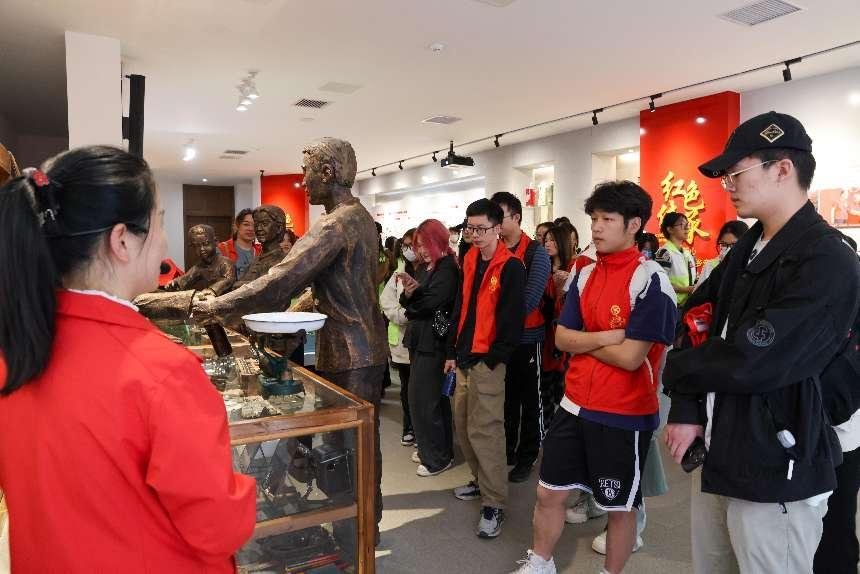 4月30日,商学院组织50名团员前往新青年编辑部旧址,举行新团员入团仪式。商学院团委书记赵杰对新入团的同学提出仰望星空、发奋学习,脚踏实地、立志成才,积极奉献、担当作为的要求,希望新团员把火热的青春与伟大的时代相结合,为中华民族的伟大复兴谱写更加壮丽的青春之歌。团员们认真参观、学习,沉浸式感受先辈们追求真理、开启民智的热情,立志要以更加饱满的热情和坚定的信念,为实现个人梦想和国家富强持续奋斗!