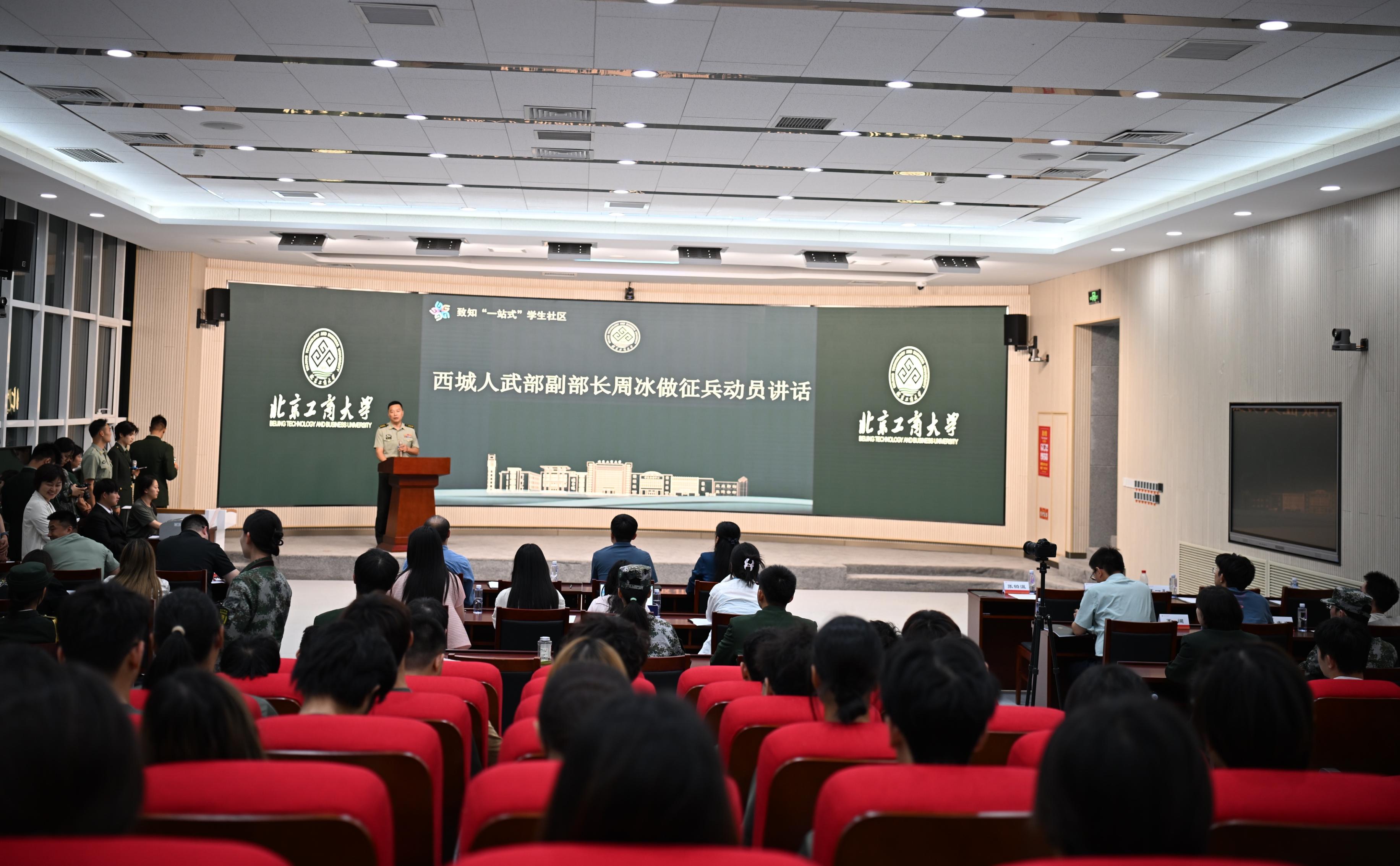 在西城区征兵进校园宣讲会环节。西城区人民武装部副部长周冰做征兵动员讲话。他以俄乌冲突为例,为现场师生分析了当前国家周边形势与世界态势,介绍了人工智能在重塑现代化战争方面的重要意义,鼓励同学们不负青春,积极参军入伍,发挥自己的专业优势和创新能力,为科技强军建设挺膺担当。
