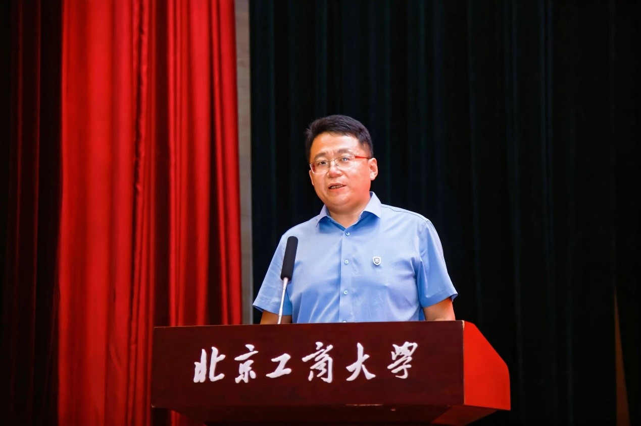 付仕伦在讲话中表示,自今天起,同学们将以“北工商商院人”这个崭新的身份在这里开启新的人生旅程,也将为商学院带来新的生机与活力,随着同学们对学校学院的了解不断深入,一定会对未来有着更高的期待,学院的师长们将始终密切关注大家的学习生活,为大家成长成才铺路搭桥、保驾护航。希望大家继承发扬学院使命愿景,传承“求是 创新 协作 卓越“的价值观,早日读懂商院、融入商院,传承商学院与生俱来北工商红色基因,坚定理想信念,以开拓进取的姿态激发新作为,以时不我待的精神担起新使命,努力成长为德智体美劳全面发展的社会主义建设者和接班人。
