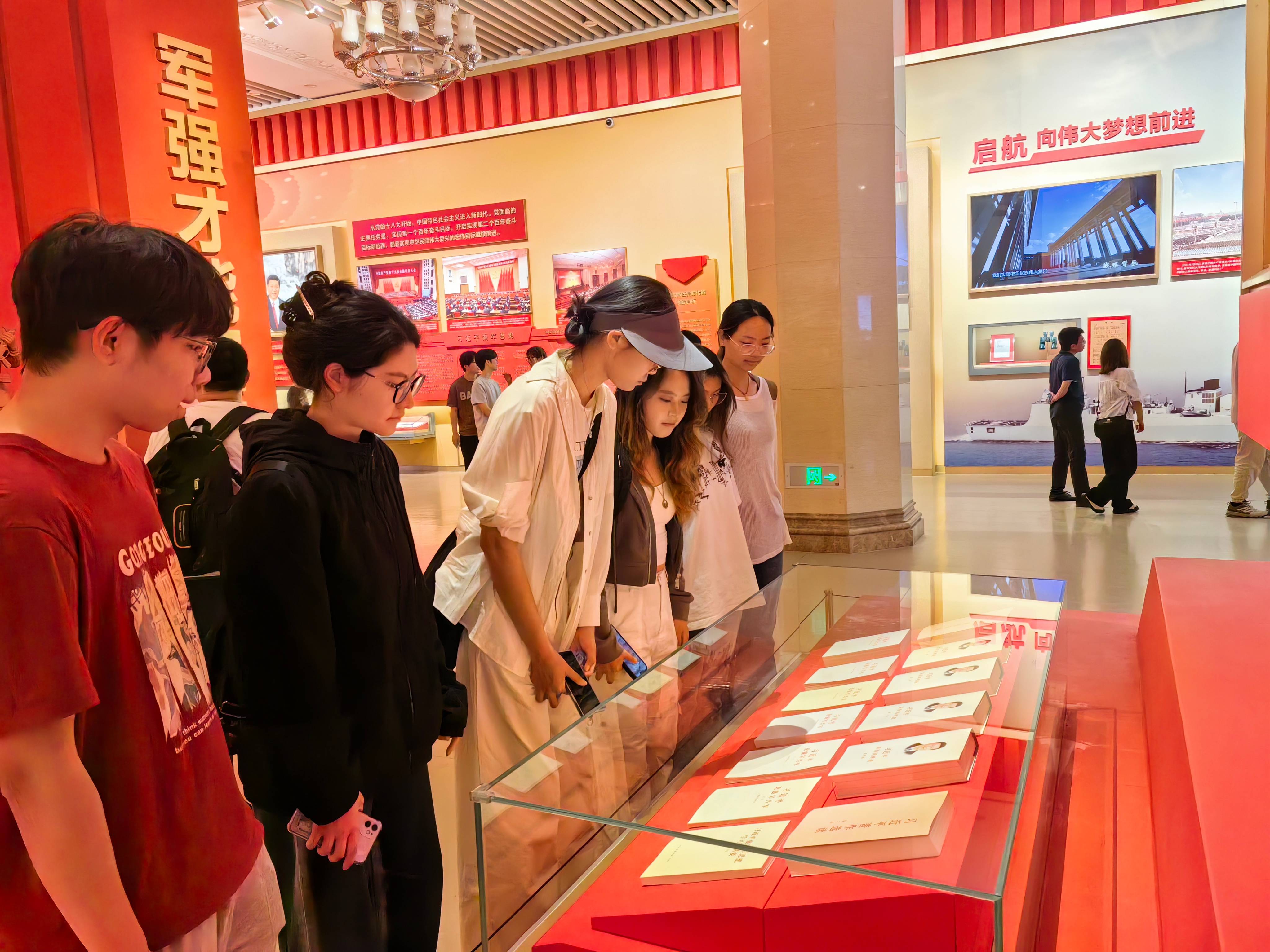 党员发展对象们缓缓走过海陆空军基本陈列展、革命战争陈列展和抗美援朝战争馆。锈迹斑斑的枪械、布满弹痕的旗帜、泛黄的战略地图……每一件文物都无声诉说着人民军队从南昌起义到抗美援朝战争的峥嵘历程。在“临津江突破英雄连”的旗帜前,同学们久久驻足,深刻体悟到革命先辈“寸土不让”的血性担当。
