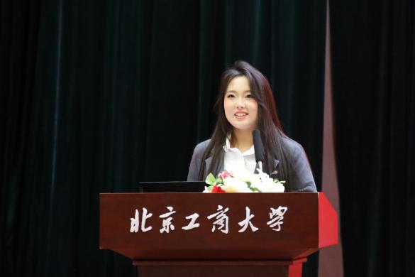 金融工程232班姜楠作为新生代表发言。她认为,新时代的青年是祖国的未来,应坚定自己的理想信念,把个人的理想追求融入党和国家事业之中,在“求真、立德、勤奋、创新”的校训教诲下,持新轫之尺,破风未知。