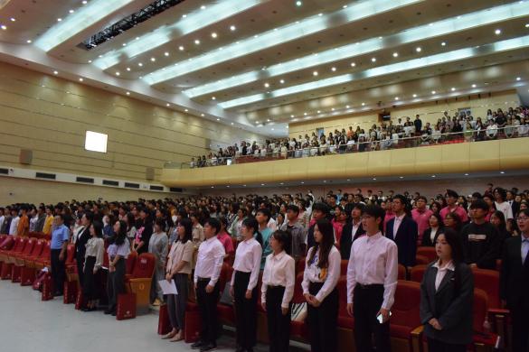 大会在雄壮的国歌声中拉开帷幕。本次开学典礼共分为三个篇章:《如约而至 开启新篇章》《踔厉奋发 奋进新时代》及《青春启航 逐梦新征程》。