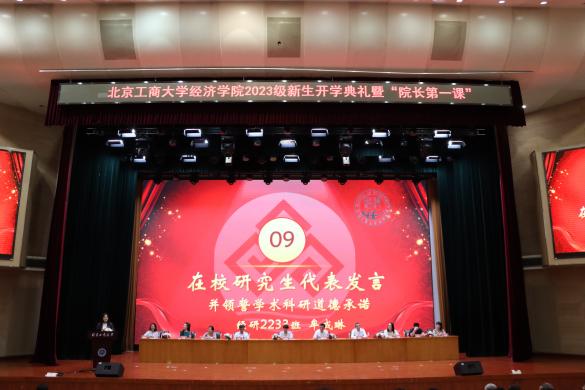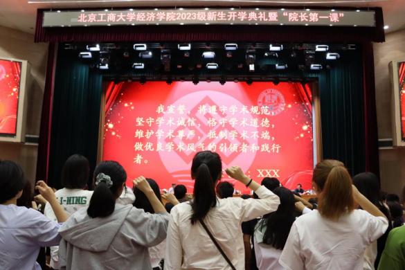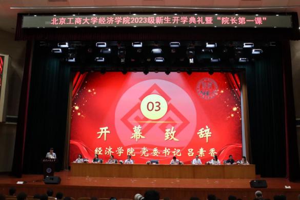 人生新序章,始于初秋;经心向远方,奔赴山海。9月27日下午,经济学院2023级新生开学典礼暨“院长第一课”在良乡主校区A报告厅举行。学院全体领导班子成员、各系教授代表、系主任、2023级本科生班主任、辅导员,以及全体2023级本科生和研究生共计750余人参加本次大会。会议由学院党委副书记李艳春主持。
