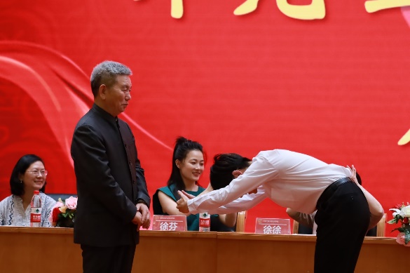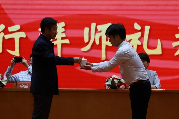 “礼”是中国传统文化的核心,我国素有“礼仪之邦”之称,讲究尊师重道,注重拜师礼仪。在本次开学典礼的拜师仪式中,研究生代表依次向鲲鹏荣誉导师行敬茶礼、插手礼和献花礼,表达最诚挚的敬意与感谢。师徒共进、薪火相传,严肃而庄重的拜师仪式是经济学院尊师重道的生动体现。