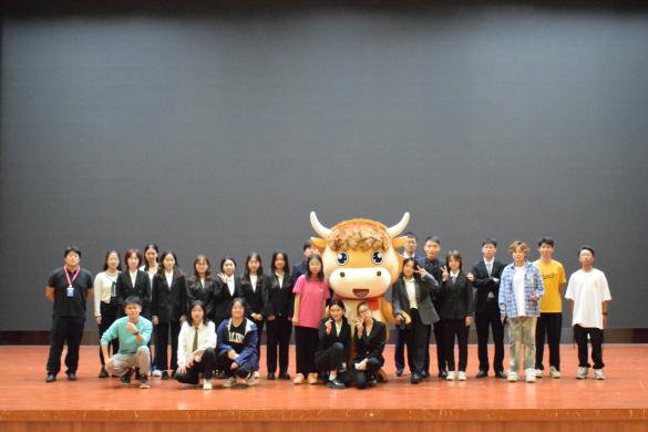 大会暖场节目精彩纷呈。来自不同组织社团的学生们先后表演了富有青春气息的歌曲串烧、独具欢快节拍的群体舞蹈,以及铿锵有力、声情并茂的诗朗诵节目,充分调动了大会现场氛围和师生情绪,而舞台前方蹦跳摇摆的学院吉祥物“小犇”,更加展现了经院和经院学子的独特活力。