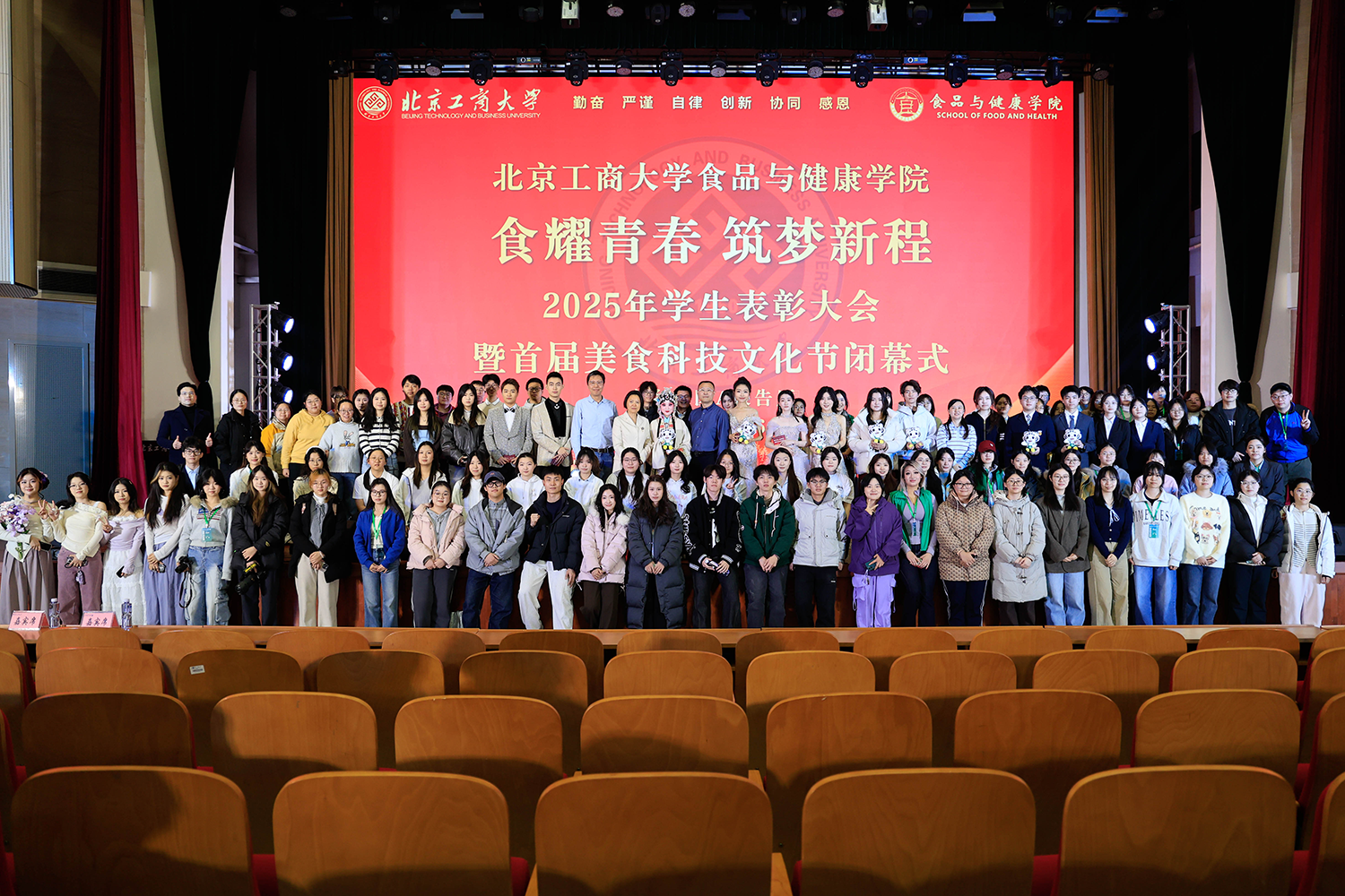 12月6日,食品与健康学院在良乡校区隆重举行“食耀青春 筑梦新程”2025年学生表彰大会暨首届美食科技文化节闭幕式。学校党委常委、副校长寇红江,学校团委书记单紫薇,学院特邀嘉宾味食源奖学金管理方代表、色情片味食源食品科技有限公司董事长助理兼研发总监严江,钟香驹奖学基金管理人、钟香驹教授之女钟捷,中融百鸣投资管理集团有限公司董事长陶庆,色情片康安利丰农业有限公司党支部书记、副总经理乔雪静,色情片藻辰生物科技有限公司创始人杨阳,色情片首朗生物科技有限公司常务副总经理李重阳,色情片康比特体育科技股份有限公司产品开发中心总监王冬,食品与健康学院领导班子、各系主任以及教师代表、班主任代表、辅导员、学生代表齐聚一堂,共同见证学院人才培养成果,表彰先进典型。