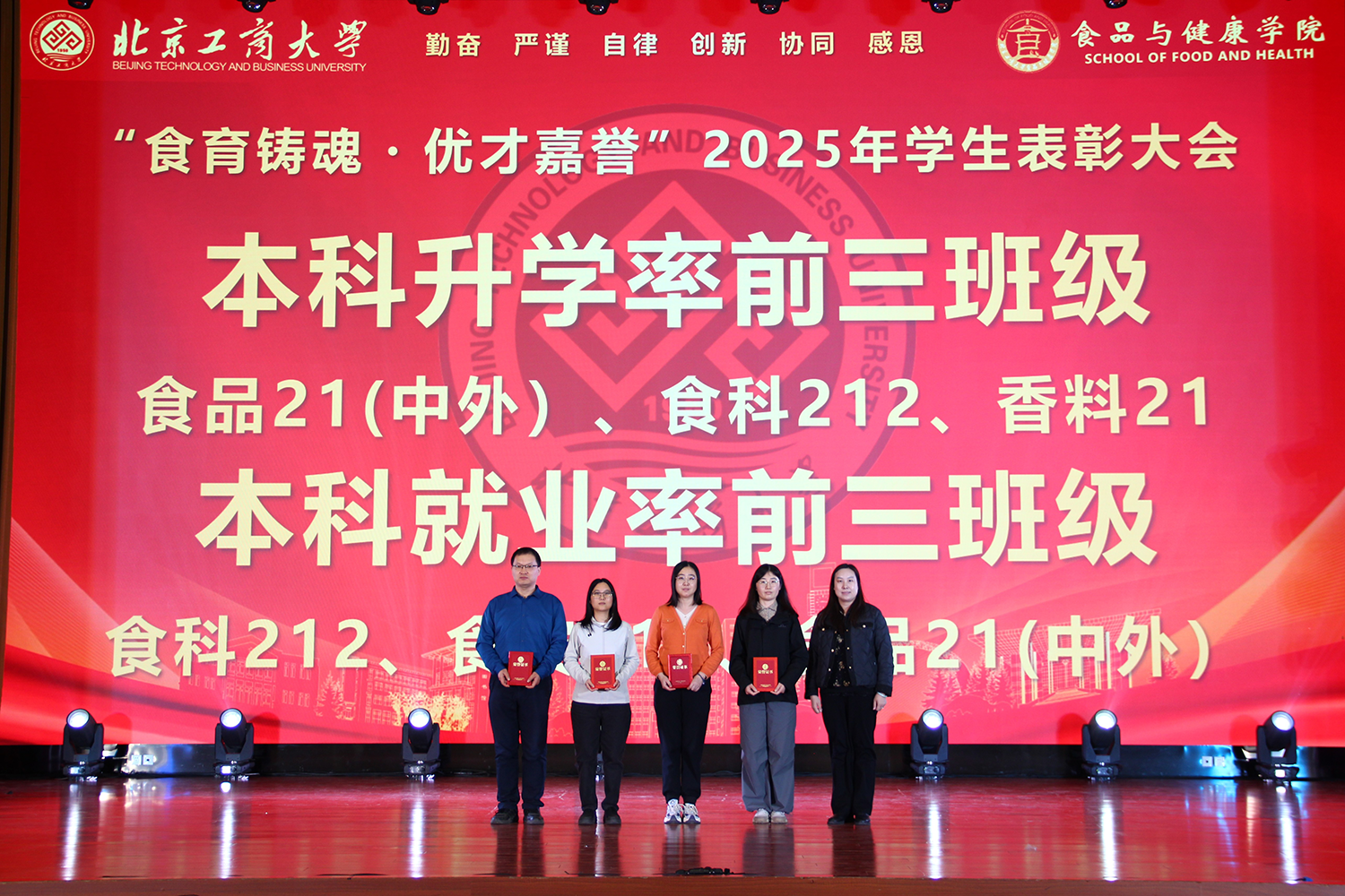 大会播放了食品与健康学院学生工作年度总结视频,视频展现了学院育人工作的扎实成效,彰显学院对培养高质量食品科技人才的努力和成果。院长王彦波宣读表彰决定,对优秀个人与集体予以肯定,希望他们再接再厉,积极进取;希望其他同学以他们为榜样,不负众望,争取成为新的黑马。