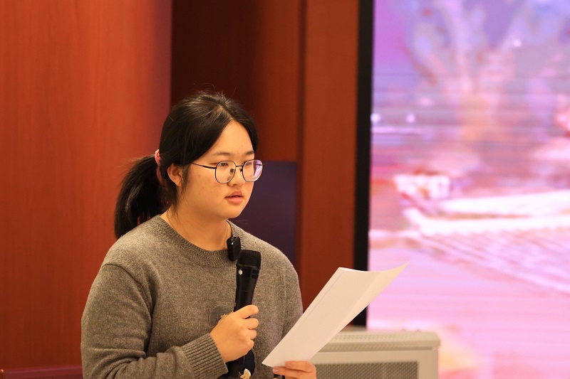 决赛现场,选手们展现了精湛的朗诵技巧与饱满的情感投入。侯龄丰同学朗诵的《匆匆》,在时光流转的慨叹中注入深沉的哲思,语言节奏张弛有度,情感表达细腻动人;胡静函同学带来的《灯祭》,以温情而克制的叙述,将亲情与怀念娓娓道来,营造出静谧而感人的氛围;陈璐同学在《青春中国》的演绎中,以昂扬的语调与澎湃的激情,展现了青年一代的朝气与担当,极富感召力。