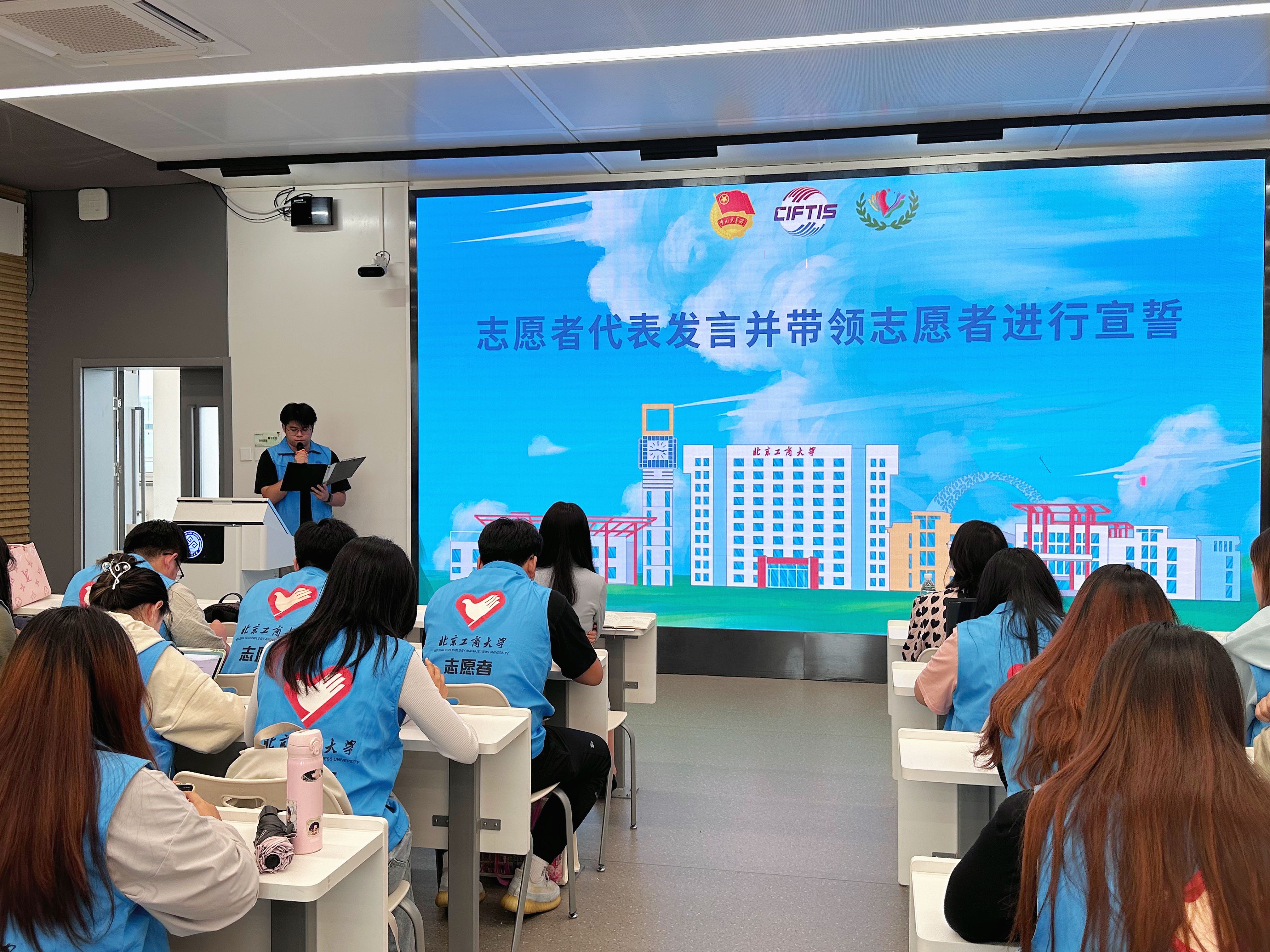 校团委书记单紫薇嘱咐志愿者们提高站位、守规守纪,服从安排,充分准备,热情服务,精益求精,用实际行动践行志愿者精神,以扎实的专业知识和过硬的本领,服务保障好服贸会工作,彰显北工商学子的良好精神风貌。