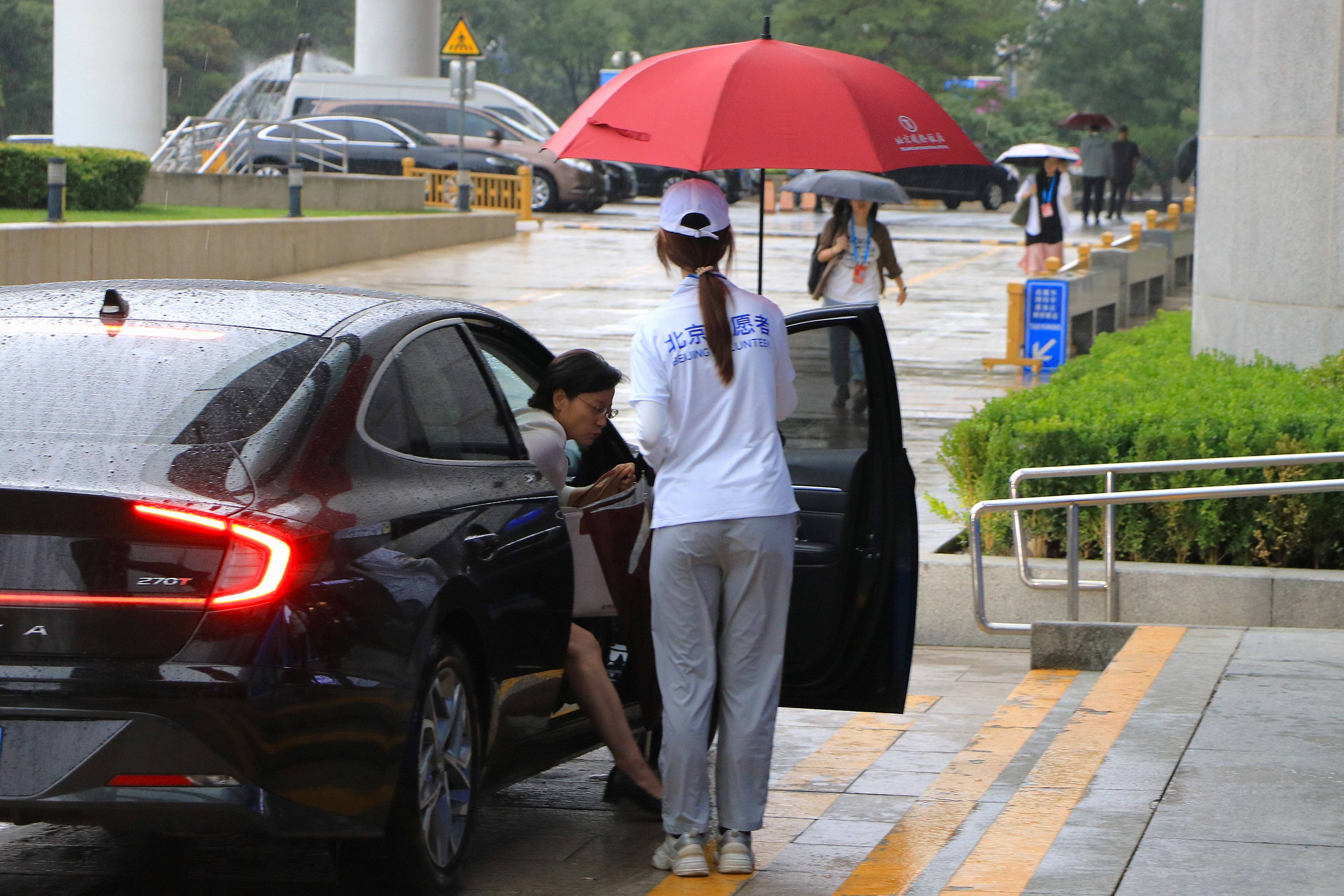 9月18日至21日,身着统一“小白衫”的志愿者们,在会议中心停车场、大堂引导处、外宾咨询台、前门会馆、天坛公园、钟鼓楼、孔庙和国子监等多个关键岗位正式亮相。