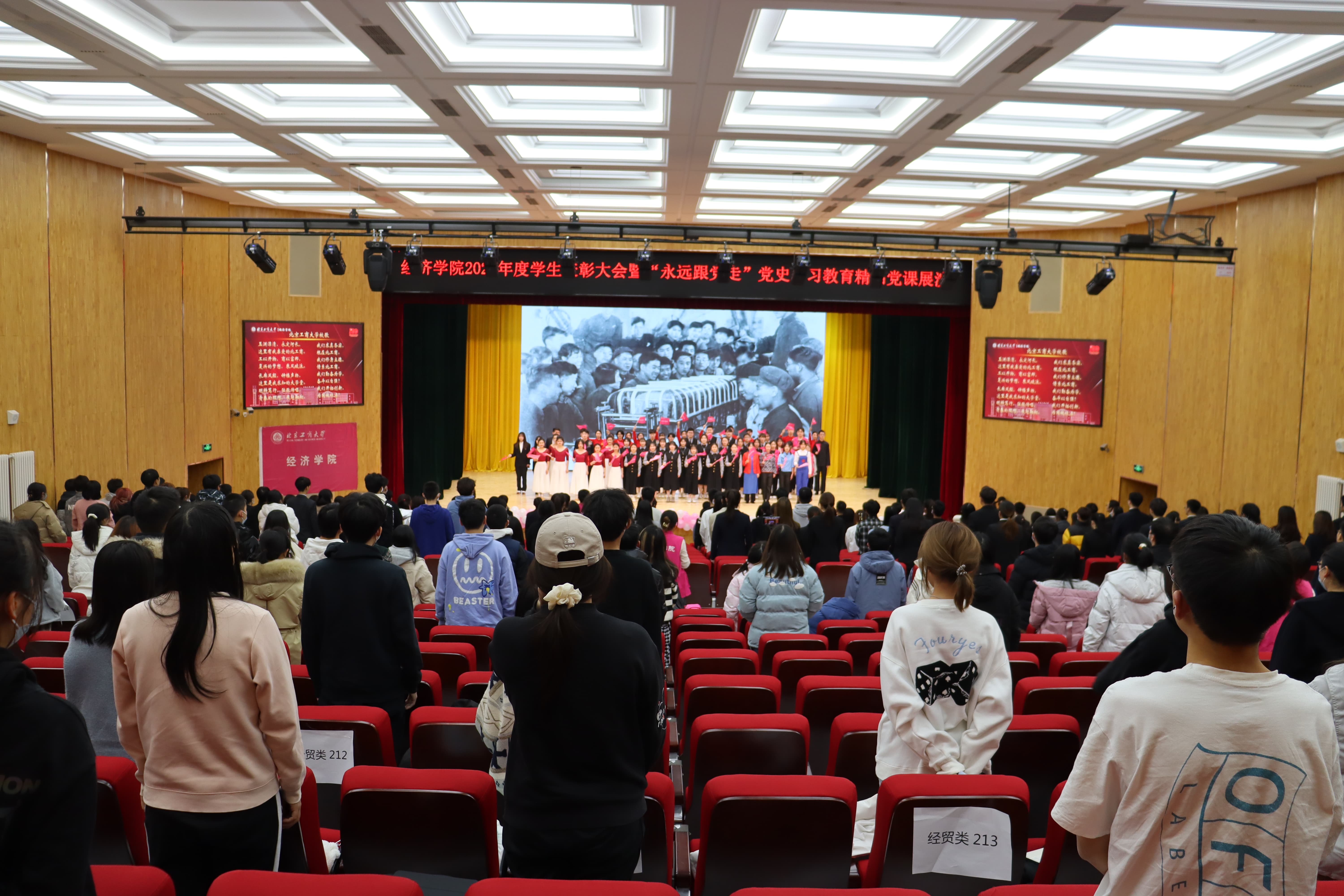 正值建党百年之际,经济学院本科生、研究生党支部分别开展了丰富多彩的以“永远跟党走”为主题的党史学习教育。支部学生遴选两幕精品党课搬上表彰大会的舞台,为观众上演了一堂精彩的党史教育课。研究生党支部以五四运动为背景,展现了中国青年在民族危亡时期国家兴亡、匹夫有责的家国情怀与青年一代的使命担当。本科生党支部结合建党百年重大任务重现了一次党日活动,串联起重大事件片段,他们从聆听者变成参与者再到讲述者,彰显了经院学子青春心向党,使命担在肩,奋进向前行的坚定信念。他们用“不忘初心,牢记使命”的拳拳赤子之情和承载“坚守信念,服务奉献”的家国情怀,真情诉说着经院学子的“使命与传承”,他们用生动而充满热血的表演诠释了经院师生的勠力同心、努力拼搏的精神风貌,激励着全院师生从奋斗故事中感悟青春,从历史的积淀中找寻力量,将经院之梦融入伟大的中国梦中,在脚踏实地中砥砺前行!