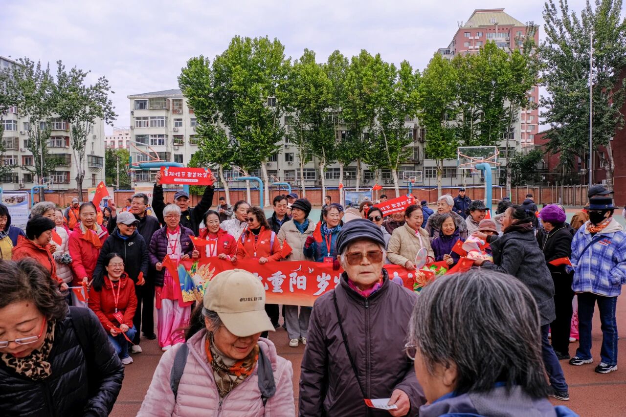 集体健步走成为活动开场的一道亮丽风景线。三名老同志旗手高举“离退休教职工健走团”“银发健步走,迈向新征程”“退休不褪色,乐活新时代”的鲜艳旗帜,迈着稳健的步伐走在队伍前方。沿途播放着《歌唱祖国》《没有共产党就没有新中国》等经典红歌,熟悉的旋律回荡在校园,唤起了老同志们的时代记忆。“一二三四!健康加油!”领队老师夏京春不时带领大家喊出简洁有力的健身口令,老同志们齐声回应,声音洪亮、精神饱满,整齐的步伐与嘹亮的口号、激昂的红歌相互呼应,形成了校园里一道充满活力的秋日图景。大家在操场步道有序前行,舒展筋骨的同时,更感受到集体活动的归属感与幸福感。