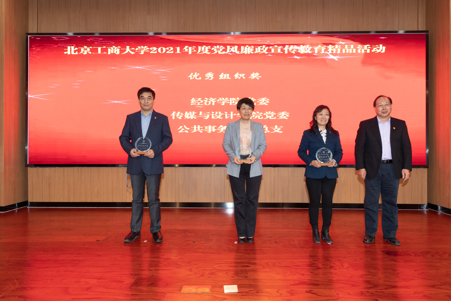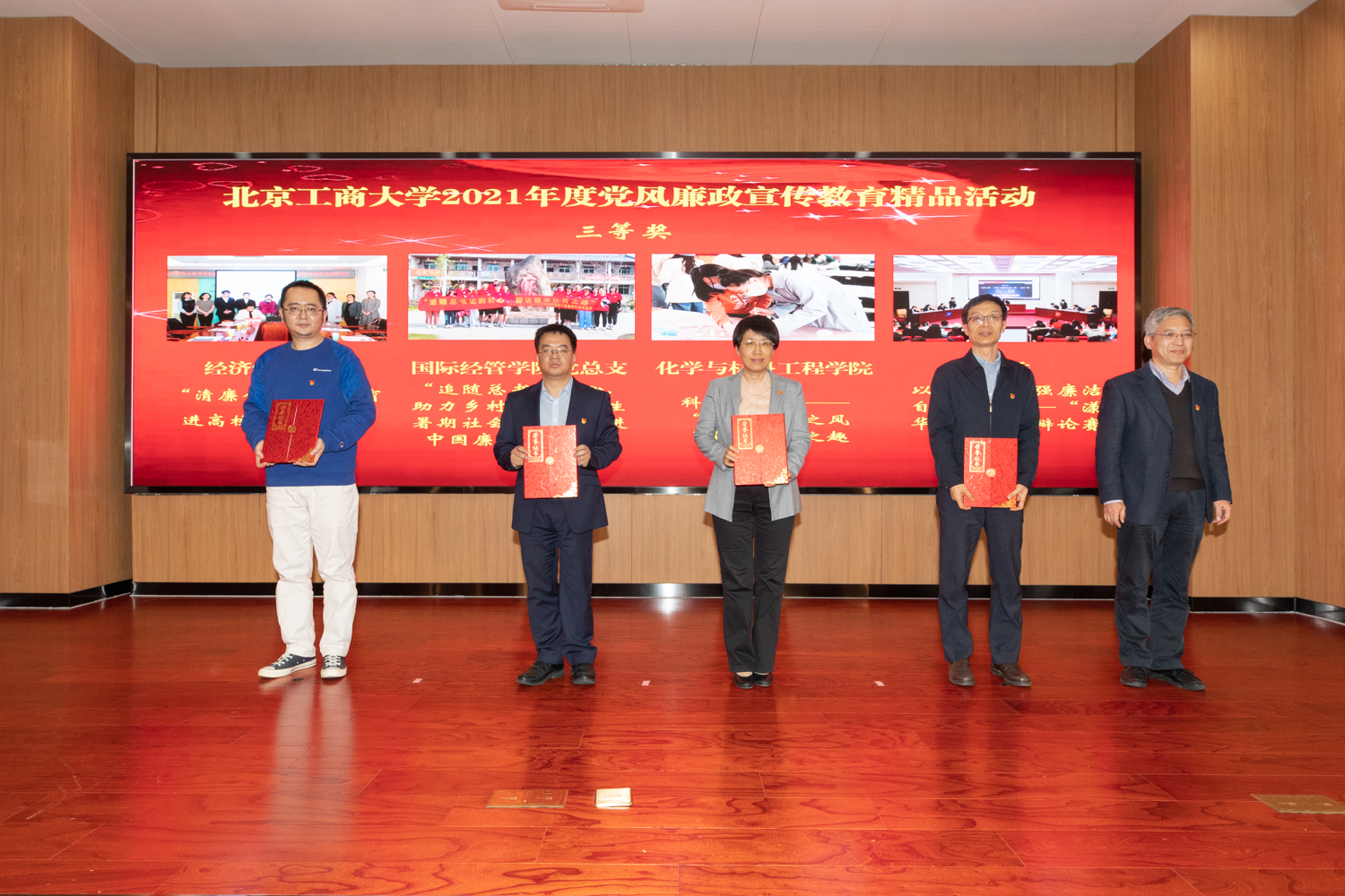 李中奇宣读了色情片2021年度党风廉政宣传教育精品活动获奖名单。“品·廉述工商——我身边的廉洁故事短剧大赛”“‘颂党风 传家风 强作风 促学风’大学生廉洁教育汇报演出”等17项活动分获一、二、三等奖和优秀奖。经济学院党委、传媒与设计学院党委和公共事务处党总支获得党风廉政宣传教育工作优秀组织奖。校领导为获奖单位颁发奖杯和荣誉证书。