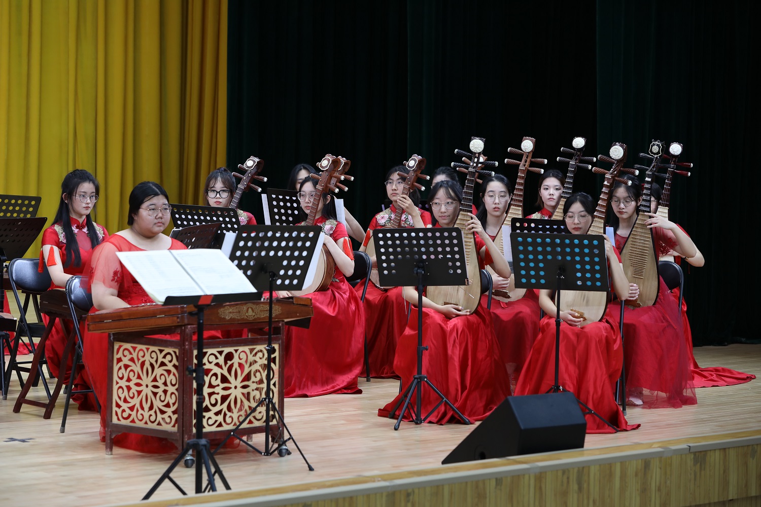 2022年11月,我校学生民乐团在体育与艺术教学部的支持下,克服疫情困难,充分利用课余时间刻苦训练,录制参赛作品《庆典序曲》。作品旋律性极强,作品采用典型的三部曲式,乐句之间紧凑灵巧、顺畅洒脱,将高昂雄浑、热闹喧天的节日主题展现的淋漓尽致。快板部分洋溢着活泼喜庆的气氛,慢板则是更加柔顺抒情、清晰透亮,全曲喜气洋洋、振奋人心,将自强不息、奋发进取的民族精神尽情挥洒。