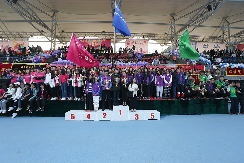 与会领导宣读了比赛成绩并为获得田径男女团体总分前六名、男子团体总分前六名、女子团体总分前六名和非田径团体总分前六名的学院分别颁发了奖杯。经济学院荣获田径男女团体总分、田径男子团体总分、田径女子团体总分、非田径团体总分四项第一名,计算机与信息工程学院、商学院分别荣获四项总分的第二名和第三名。此外,食品学院、理学院和外国语学院获得最佳啦啦队奖,材料与机械工程学院、艺术与传媒学院和法学院获得最佳精神文明奖。颁奖仪式现场,欢呼声此起彼伏,掌声经久不息。