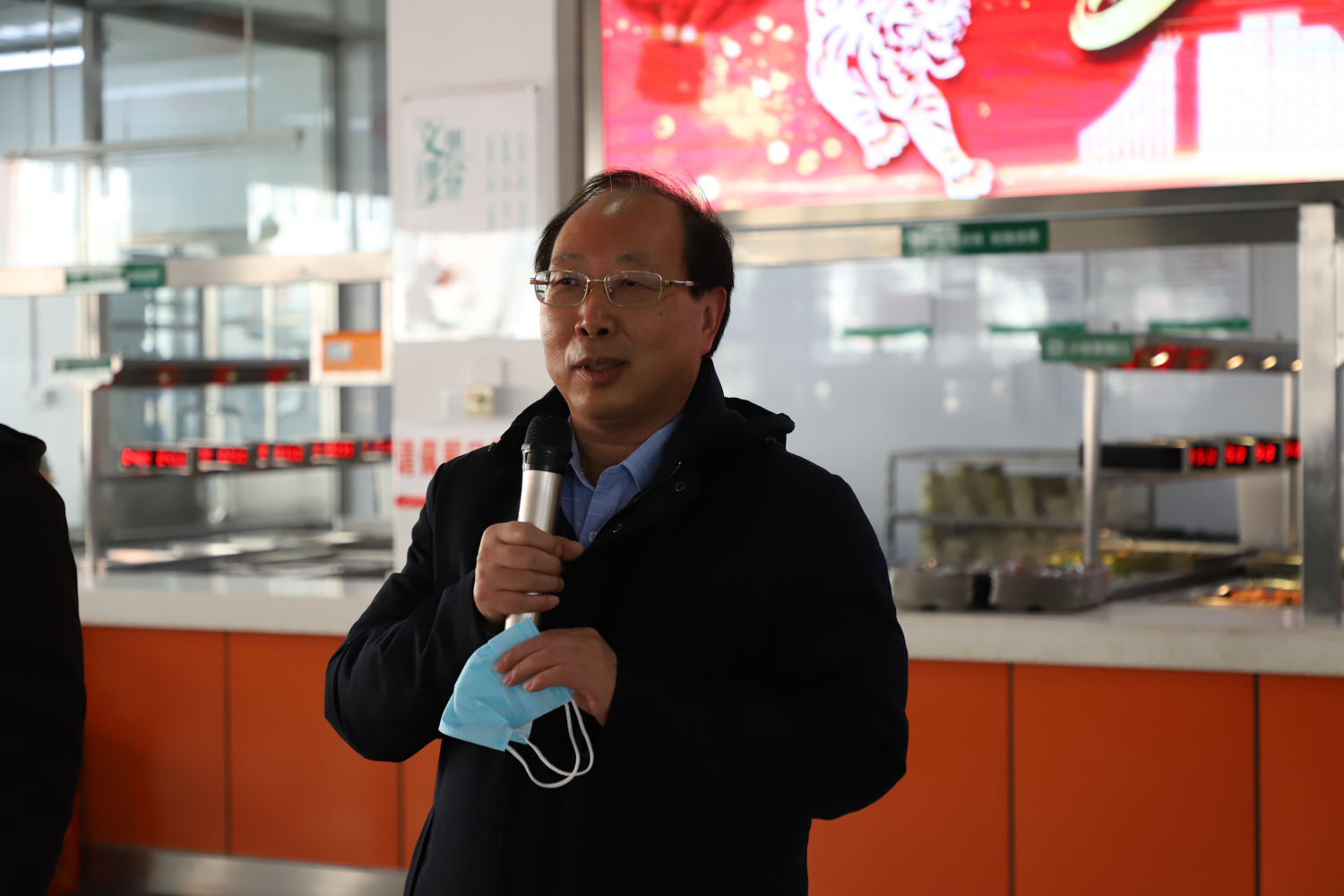 黄先开指出,疫情发生以来,校园保卫人员和后勤服务人员发扬连续作战精神,强化责任担当,坚守工作岗位,为全力守护好师生的安全健康做出了重要贡献。黄先开强调,当前疫情防控任务依然艰巨,大家要继续保持定力、克服困难、咬紧牙关不松劲,立足岗位履职尽责,以更深入更细致更扎实的工作,从严守好校园大门,竭尽全力做好服务保障,构筑起上下联动、纵横贯通的“保障线”,让留校学生过一个放心安心暖心的虎年春节。黄先开鼓励留校学生要珍惜假期时间,充实自己,注意个人防护,保重身体,学校将全力以赴做好留校学生学习、科研、生活等各项保障工作。