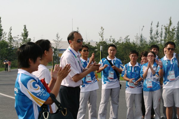 9月20日,我校残奥村志愿者除个别岗位之外,绝大多数志愿者已于当日12点圆满完成服务使命,下午全体志愿者在残奥村运动员餐厅享用最后一餐,这是奥运村运行团队特意给志愿者准备的感恩餐,是志愿者第一次试用运动员餐,也是最后一次。3点左右,我校党委副书记卢思锋、团委书记吕素香亲自赶赴残奥村与即将离去的志愿者合影留念。卢思锋副书记讲到:在前段时间的服务中,志愿者表现得都很优秀,现在的心情肯定是依依不舍的,希望大家能克服这种情绪,抓紧时间好好休息,尽快投入到正常的学习中去。之后,卢思锋副书记赶往我校残奥村服务生驻地,代表学校慰问并迎接服务生回“家”。
