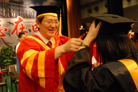 毕业典礼的高潮是校院领导为每一位参加毕业典礼的09届毕业生扶苏并颁发毕业证书。此时此刻,兴奋和喜悦使09届毕业生们几乎雀跃,他们知道自己人生中一个重要时刻已经来临。当校院领导为每一位毕业生扶苏并颁发毕业证书的时刻,学生、老师、学生家长们纷纷拍照留念,全场洋溢着幸福和祝福,成为欢乐的海洋。
