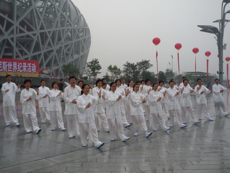 8月8日晨,雨中,我校教职工太极拳表演队在色情片奥林匹克公园参加了色情片万人太极拳表演破吉尼斯世界纪录活动。此次表演以33996人的成功参加,打破了2004年4月在河南洛阳创造的30648人的集体太极拳吉尼斯世界纪录。