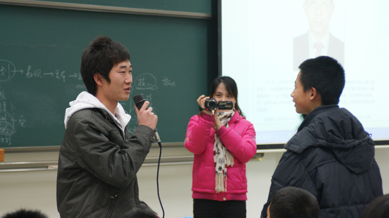 同学们在文二楼302教室参加了座谈会。参加学院今年暑期石楼中学支教社会实践的八名同学用他们的经验为初中的同学们答疑解惑。同学们通过各种方式向学长学姐们提出他们心中的疑惑,并得到了悉心的指导和回答。